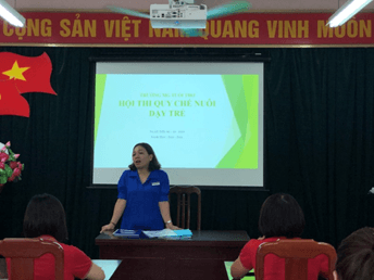 Đ/c Nguyễn Thu Hiền: Bí thư chi bộ - Hiệu trưởng nhà trường đã phát biểu khai mạc Hội thi, đồng chí nhấn mạnh: Mỗi giáo viên, nhân viên trong nhà trường cần tự học, sáng tạo, trao dồi, học tập lẫn nhau đồng thời thể hiện kinh nghiệm của mình trong công tác chăm sóc, nuôi dưỡng cho sự phát triển toàn diện cả về thể chất và trí tuệ của trẻ trong độ tuổi mầm non.