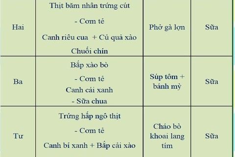 Gợi ý thực đơn cho trẻ tuần 2 tháng 12