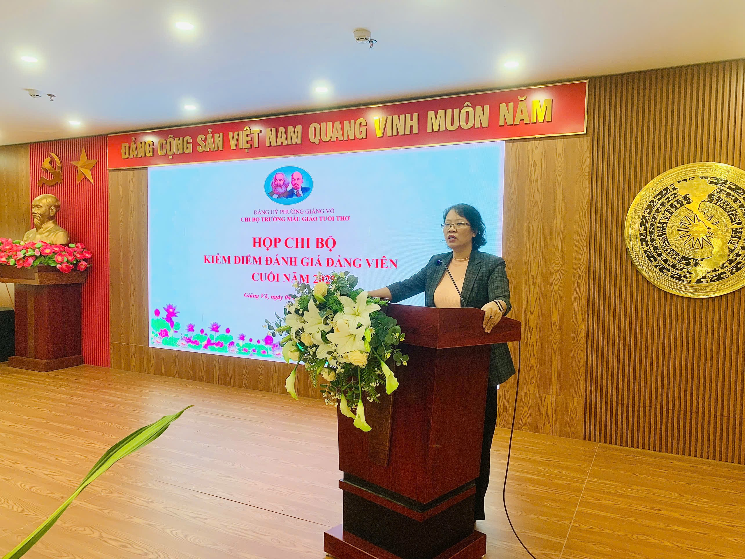 Buổi sinh hoạt có ý nghĩa đặc biệt quan trọng, nhằm đánh giá trung thực, khách quan kết quả lãnh đạo và thực hiện nhiệm vụ của Chi bộ và từng đảng viên trong năm. Qua đó, Chi bộ phát huy ưu điểm, chỉ rõ hạn chế, và xác định biện pháp khắc phục để nâng cao năng lực lãnh đạo, sức chiến đấu của Chi bộ ; xây dựng đội ngũ đảng viên gương mẫu, trách nhiệm , góp phần nâng cao chất lượng nuôi dưỡng – chăm sóc – giáo dục trẻ và hoàn thành tốt nhiệm vụ chính trị của nhà trường