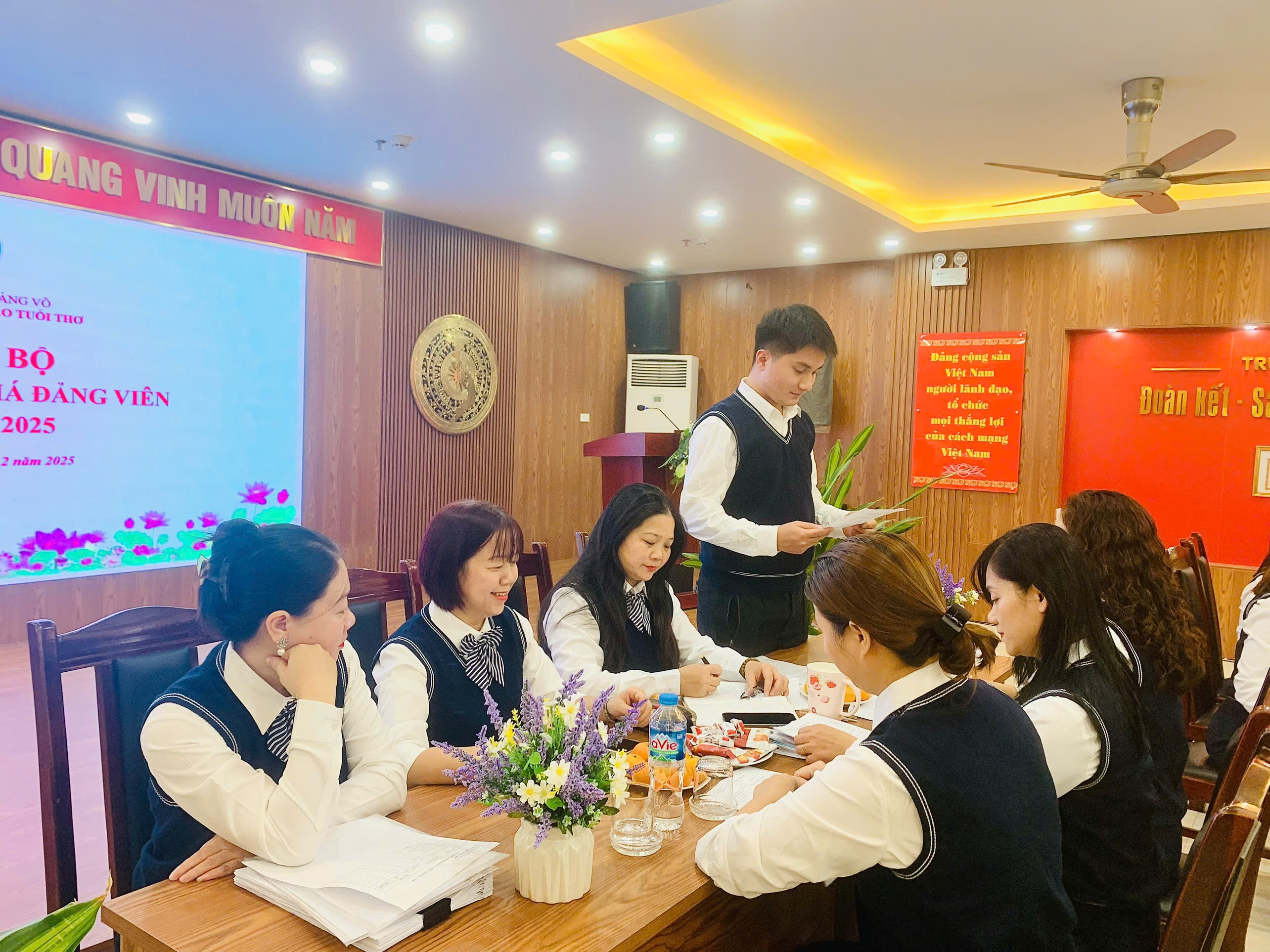 Đánh giá Đảng viên: Chi bộ đã chia thành 3 Tổ Đảng để các cá nhân tự kiểm điểm, nhận xét, và tiến hành phát phiếu biểu quyết để đánh giá, phân loại chất lượng từng đảng viên năm 2025