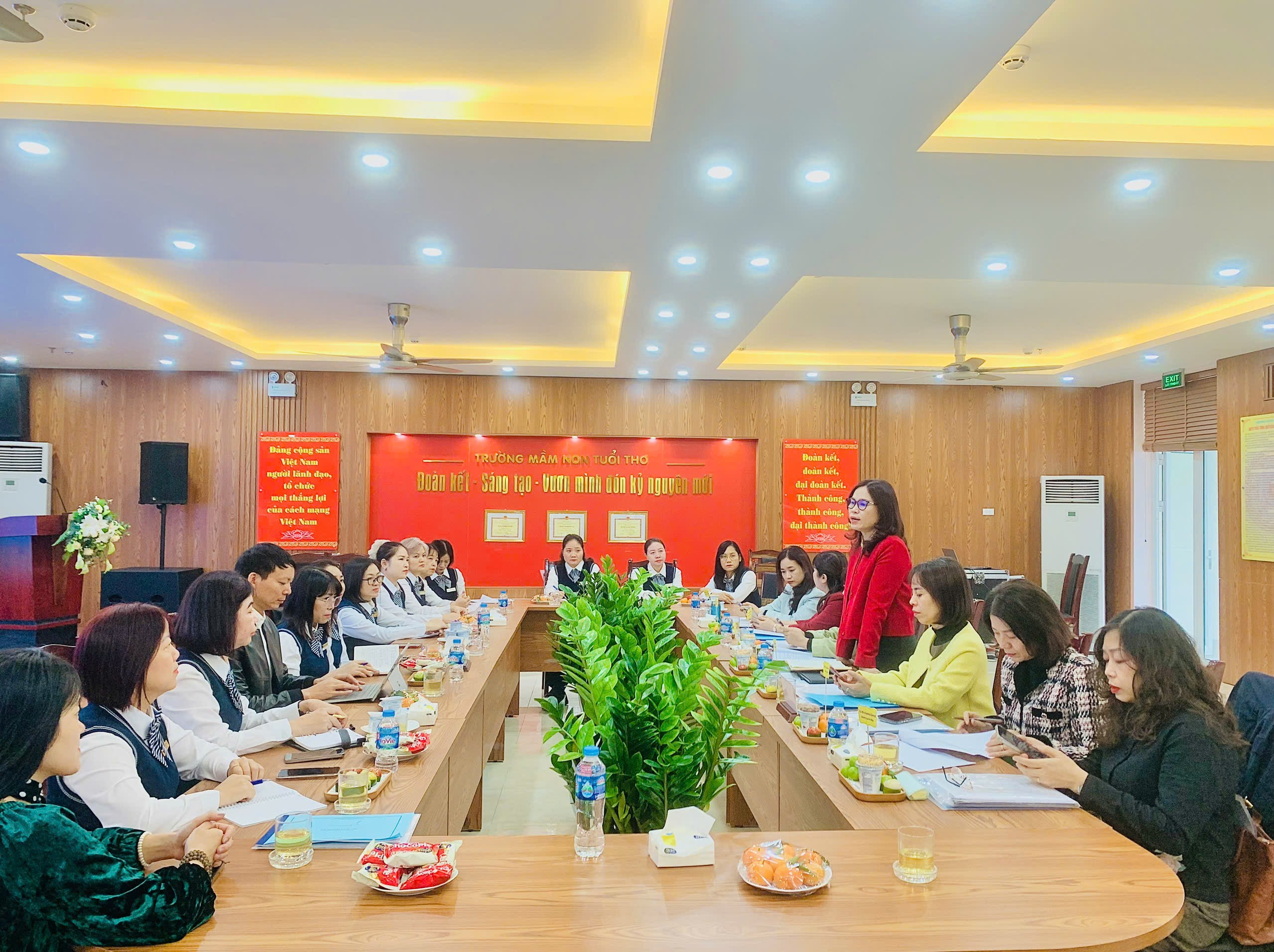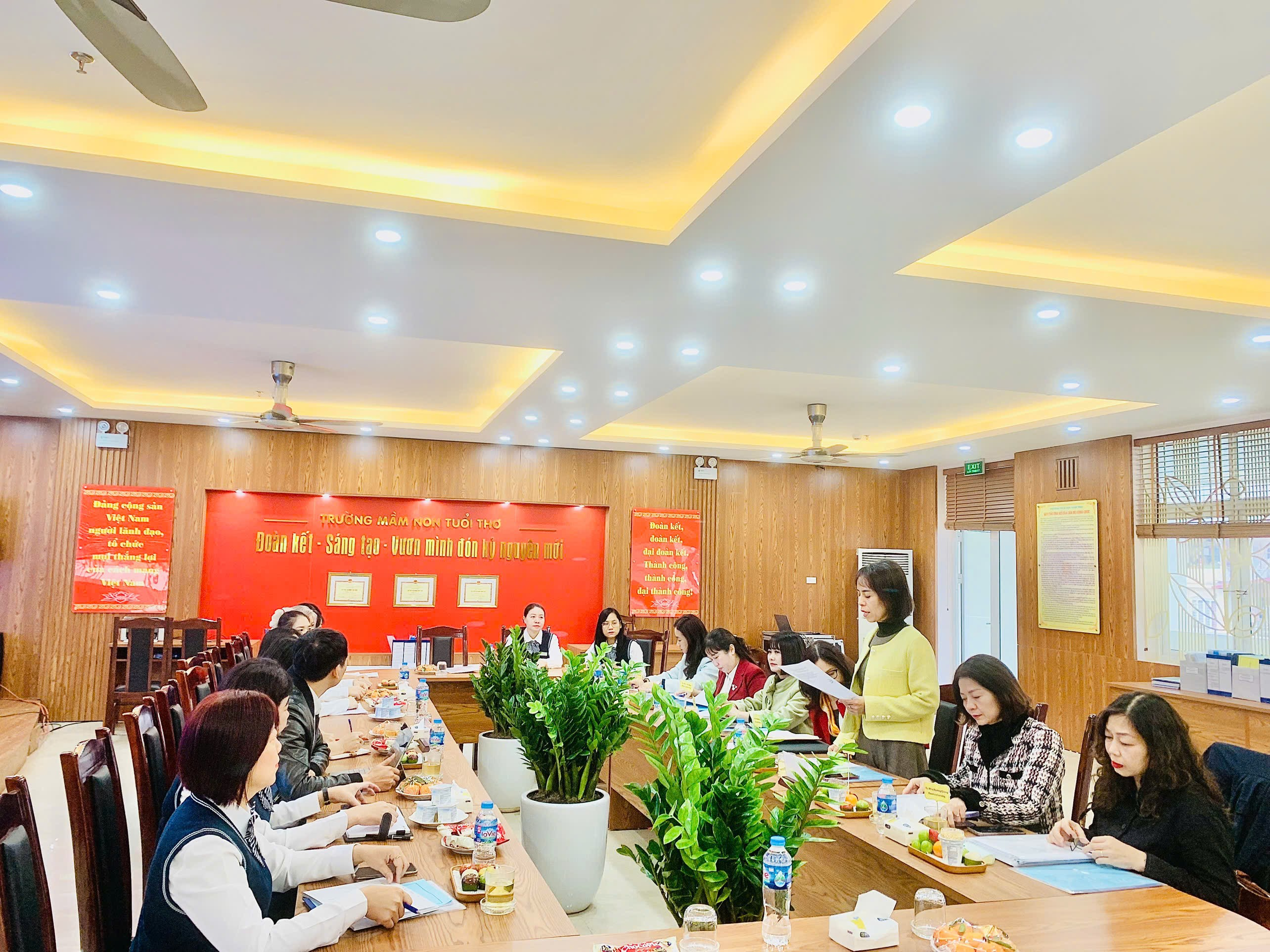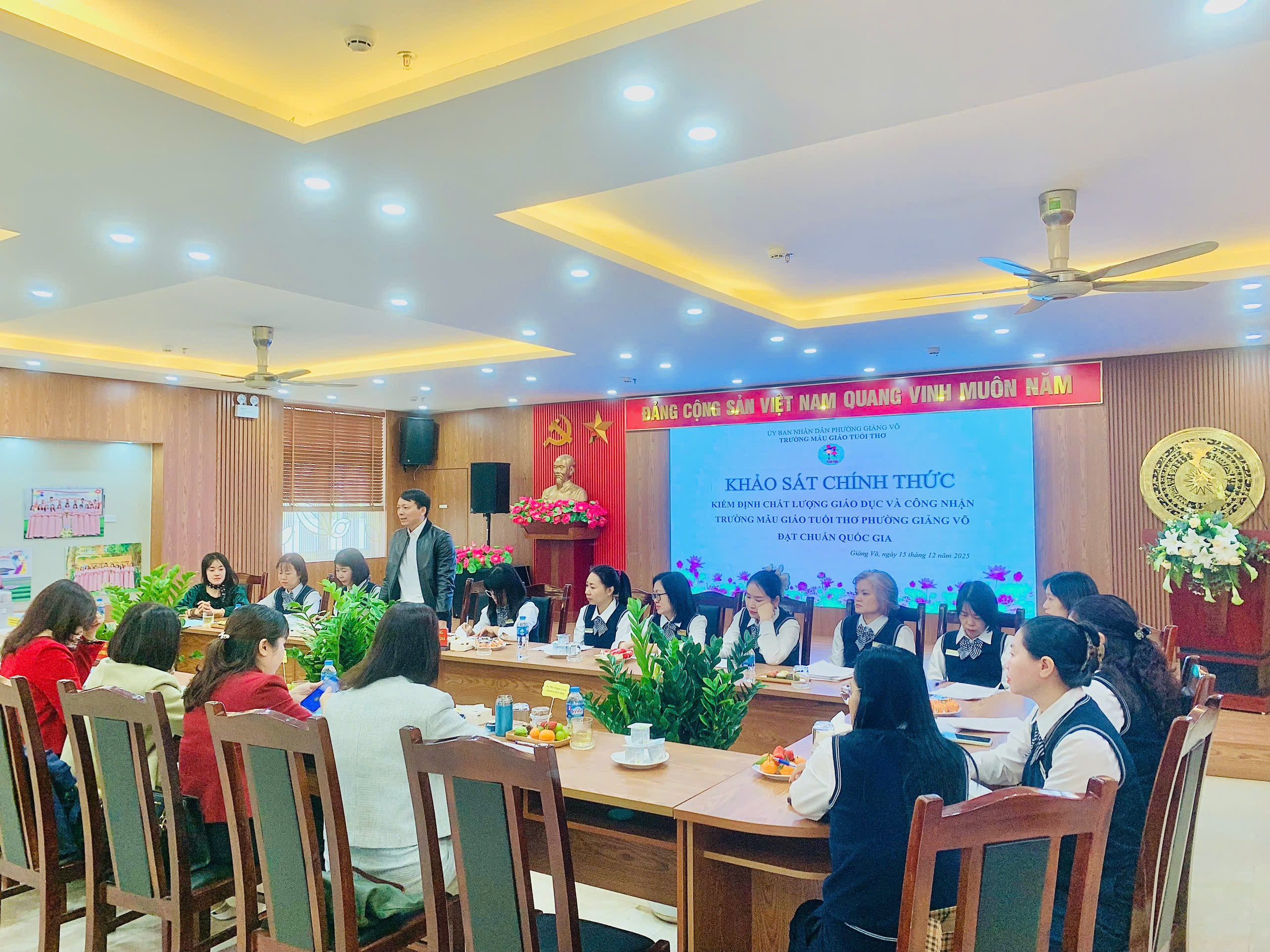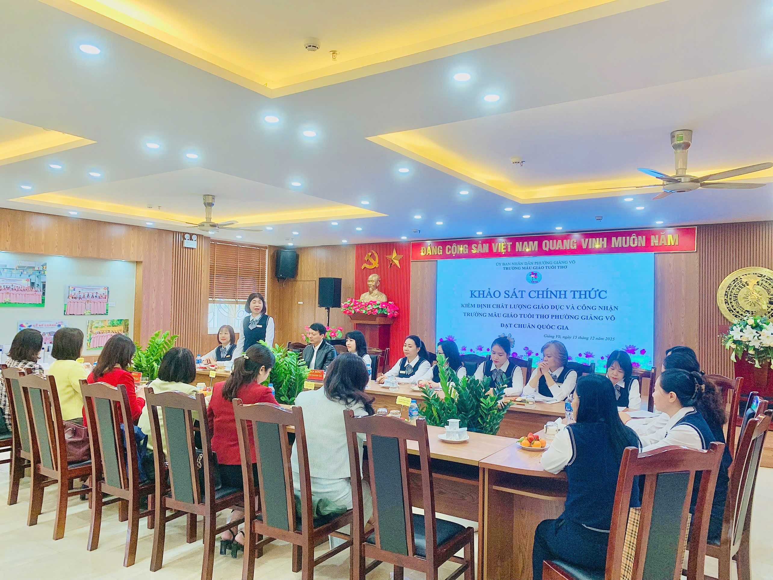 Tham dự buổi làm việc còn có đại diện UBND phường Giảng Võ, đại diện Ban đại diện cha mẹ học sinh của nhà trường và Ban giám hiệu cùng toàn thể các thành viên hội đồng tự đánh giá Trường mẫu giáo Tuổi Thơ.