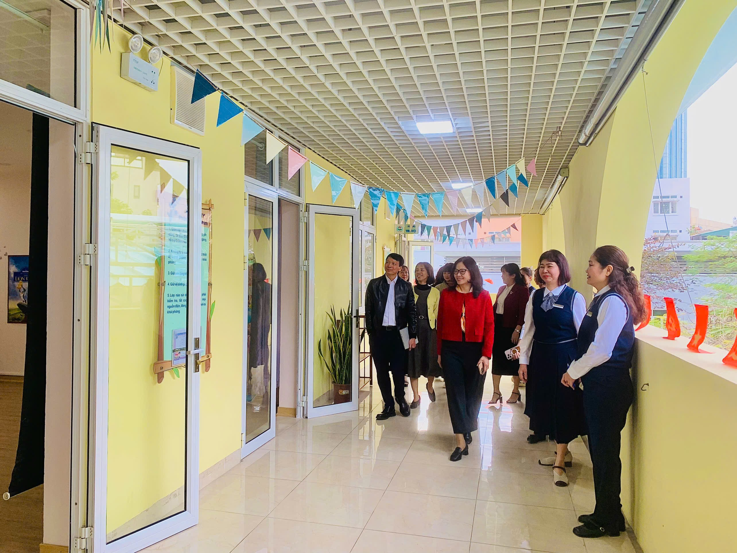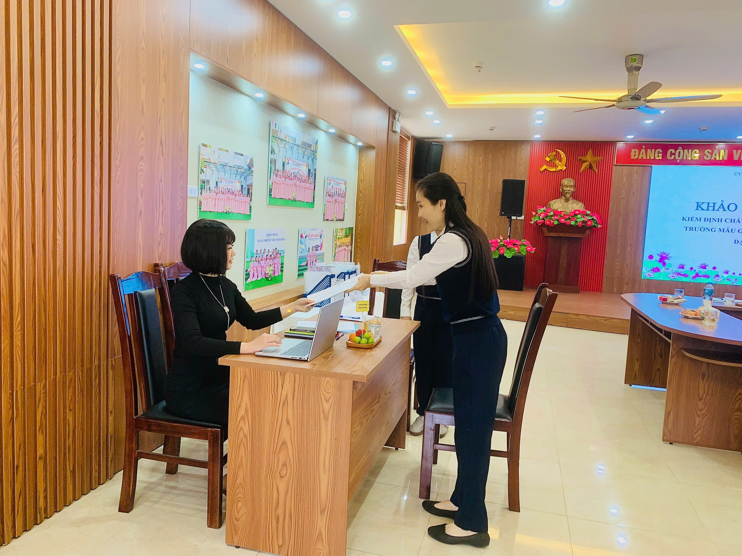 Sau khi nghe báo cáo, các thành viên trong đoàn đã đi khảo sát thực tế tại khuôn viên nhà trường, đến từng khu vực, phòng ban, lớp học để đánh giá sâu về chất lượng từng công tác của nhà trường, từng thành viên đều đánh giá cao cơ sở vật chất, chất lượng tổ chức các hoạt động chăm sóc giáo dục trẻ, các hoạt động theo quy chế của từng thành viên trong nhà trường. Đoàn cũng tiến hành kiểm tra toàn bộ hồ sơ, minh chứng 05 năm phát triển của nhà trường, từ đó từng thành viên đưa ra những ghi nhận, góp ý để nhà trường tiếp tục làm tốt hơn nữa trong giai đoạn sau đánh giá.