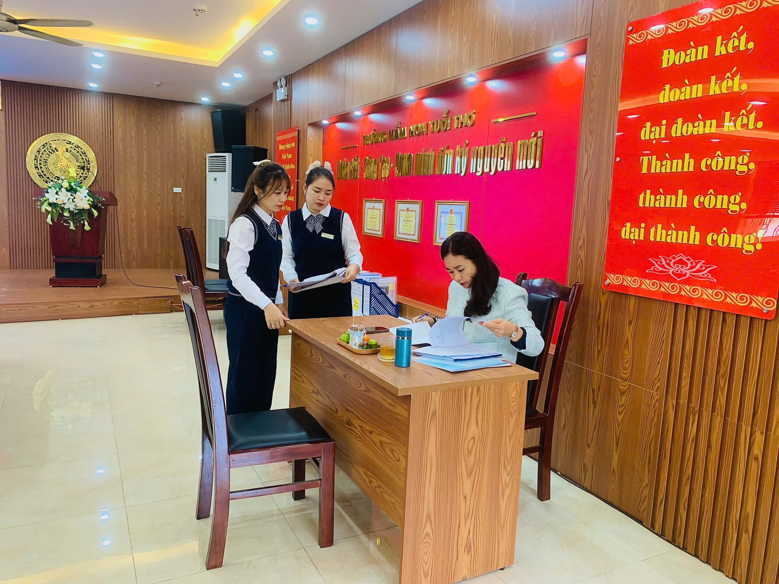 Đoàn cũng tiến hành kiểm tra toàn bộ hồ sơ, minh chứng 05 năm phát triển của nhà trường