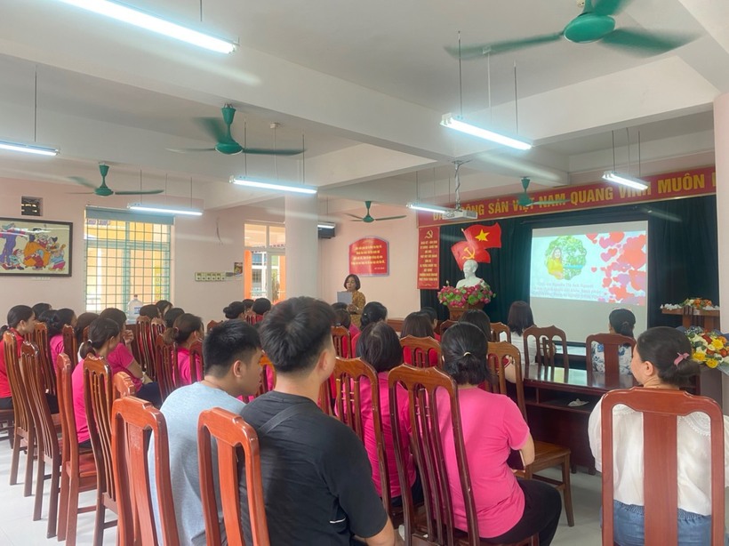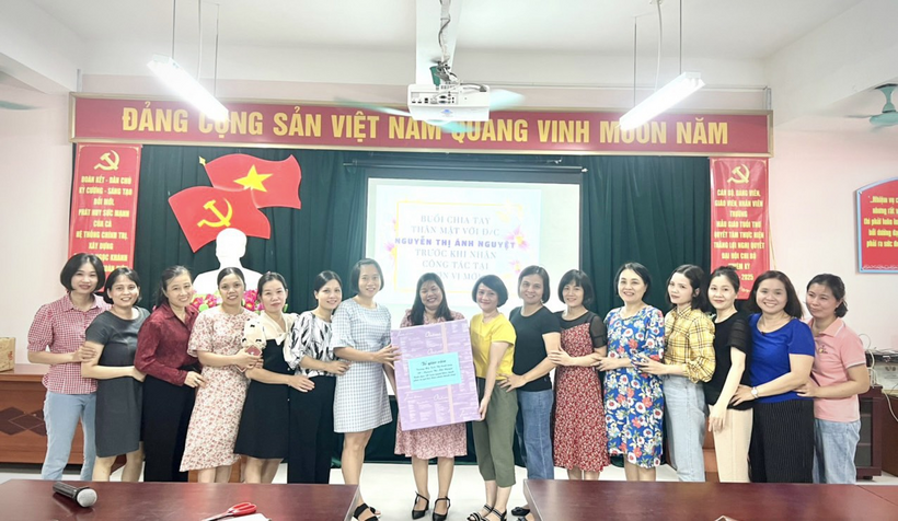 Đ/c Thu Hiền - BTCB - HT đọc quyết định luân chuyển điều động trước tập thể CB-GV-VNV trường MG Tuổi Thơ