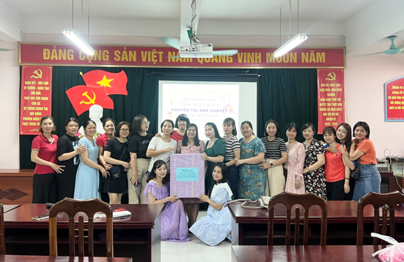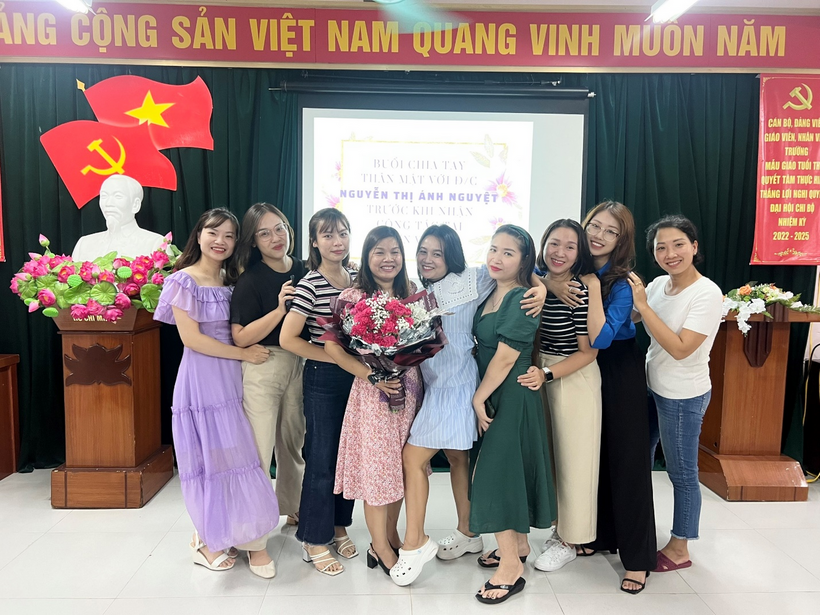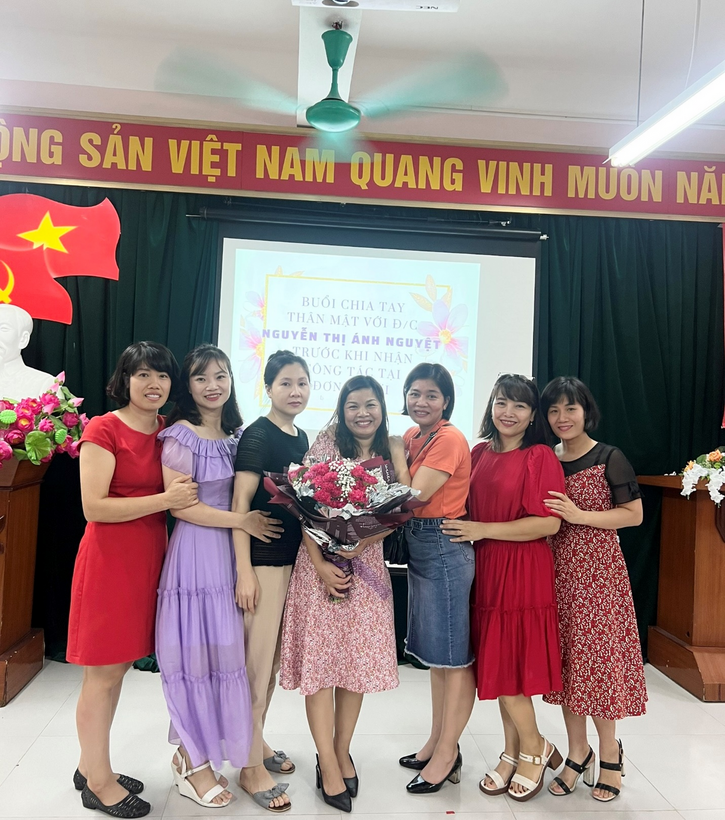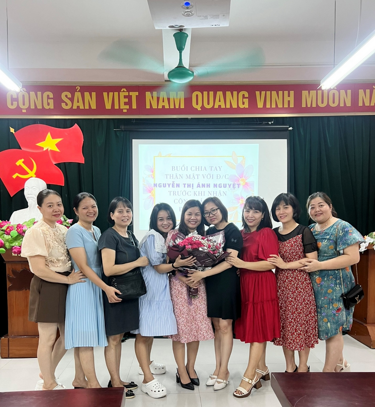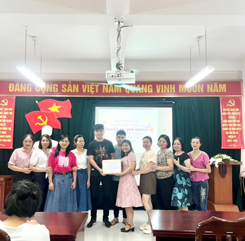 Chia tay với đồng chí Nguyễn Thị Ánh Nguyệt, tập thể nhà trường không thể nói hết được những tình cảm của mình mà còn mong muốn đ/c luôn nhớ tới trường mẫu giáo Tuổi Thơ, mái trường này sẽ mãi là mái nhà chung của đồng chí. Thay mặt tập thể CB - GV - NV chúc đồng chí ở ngôi trường mới luôn luôn đem hết tâm huyết và chuyên môn của mình để góp 1 phần lớn cho sự nghiệp phát triển giáo dục của Quận Ba Đình