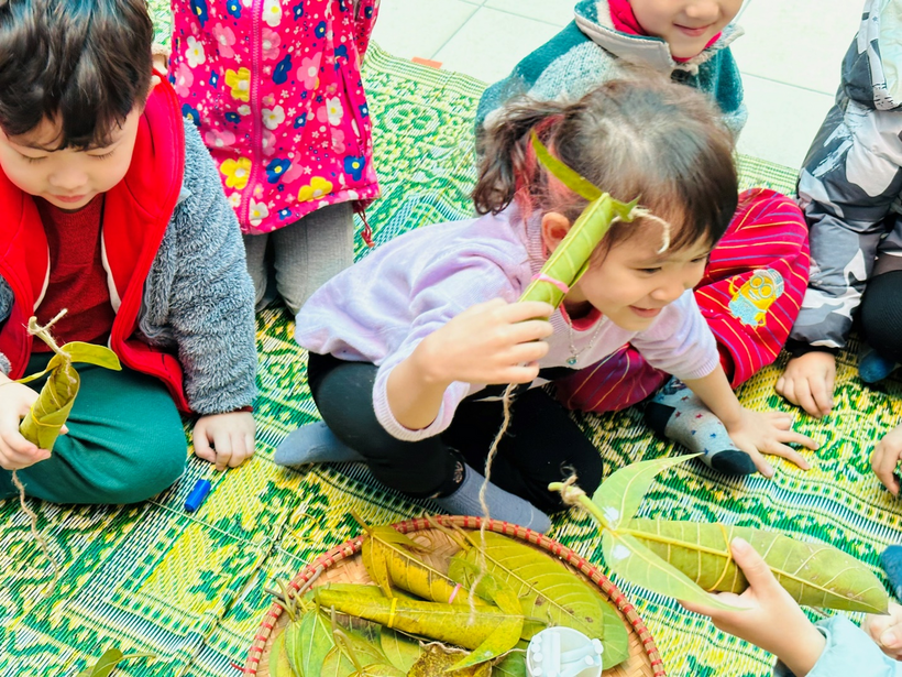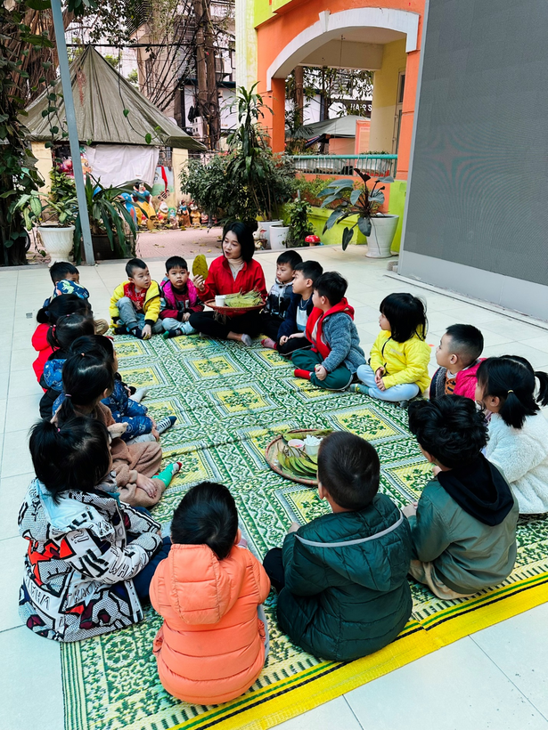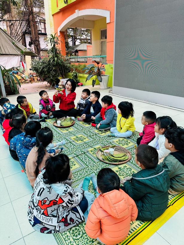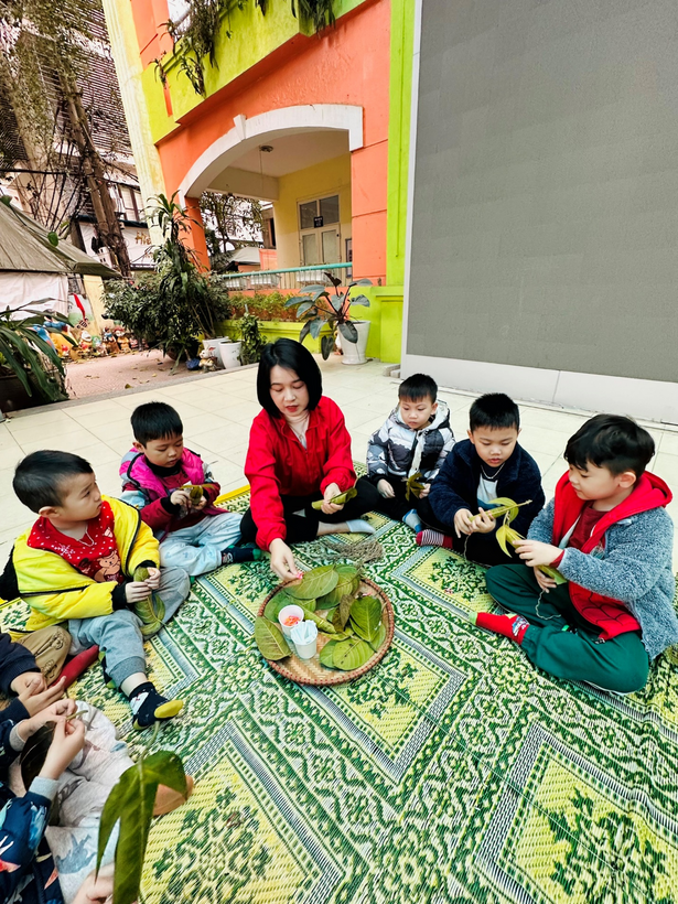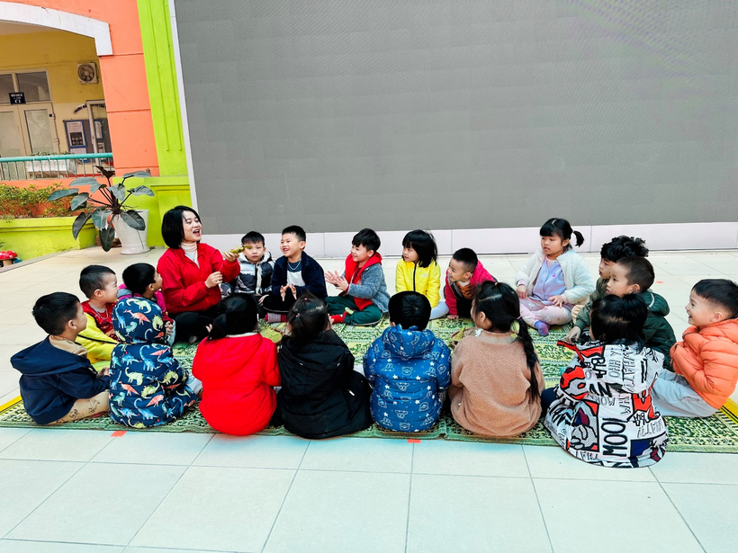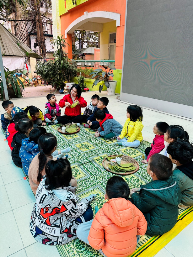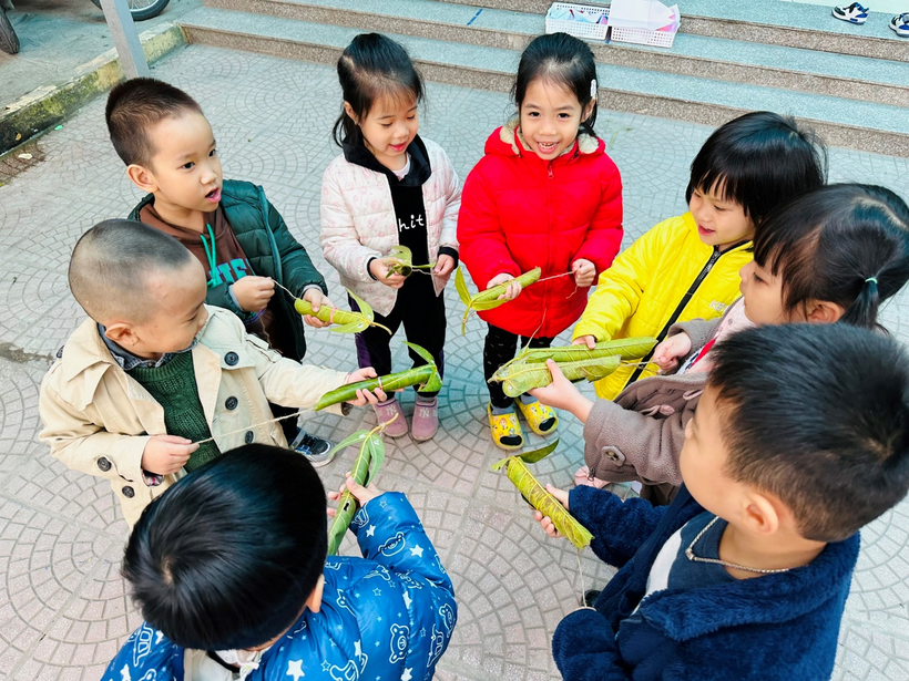 2) Cô giáo Nguyễn Định hướng dẫn trẻ từng bước làm con “Nghé ọ”