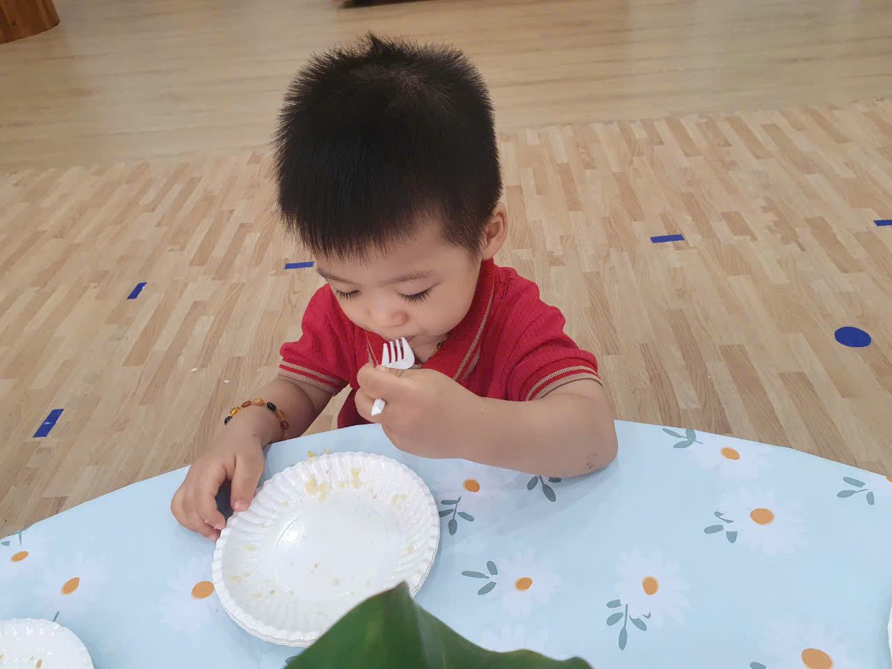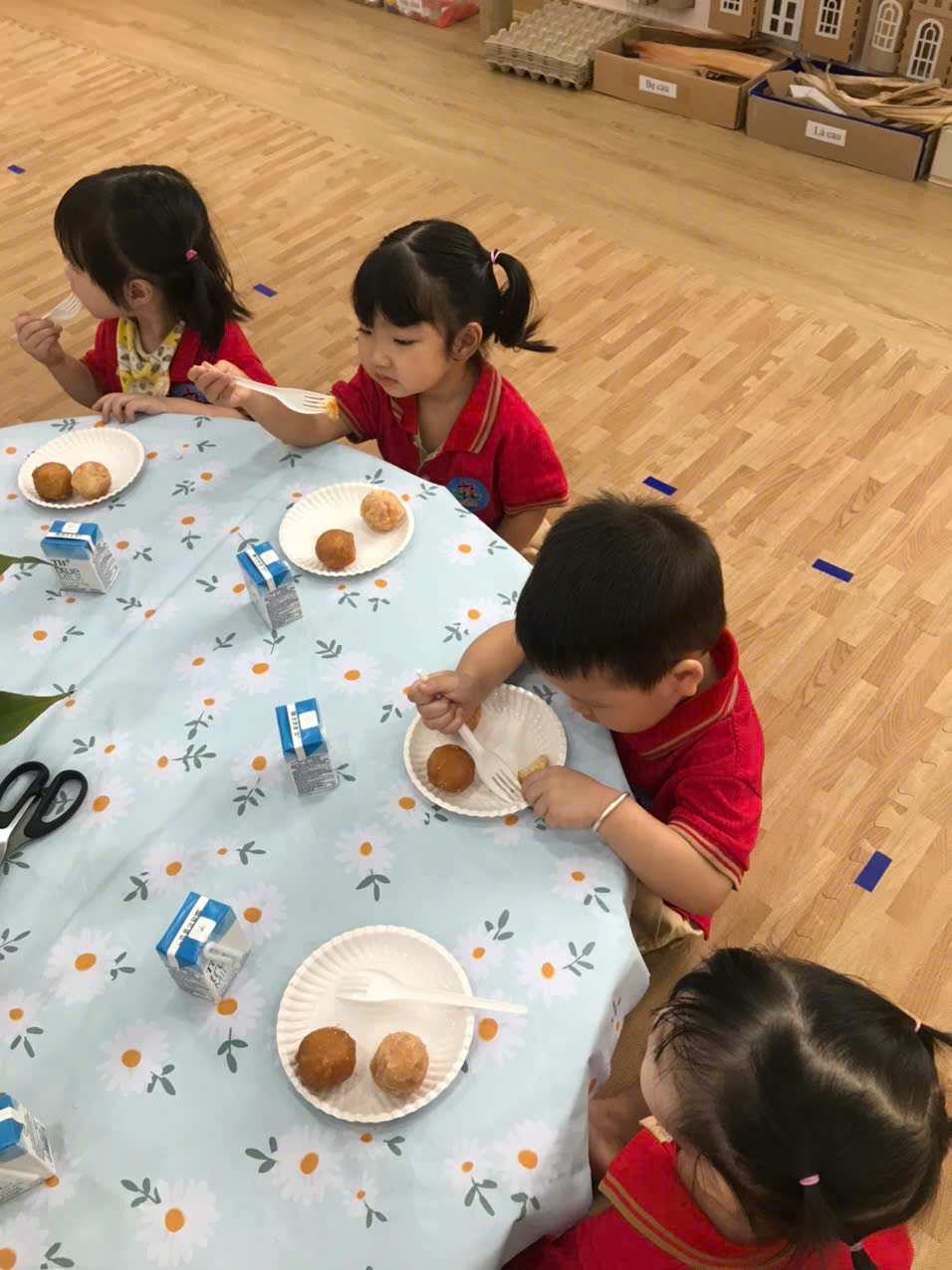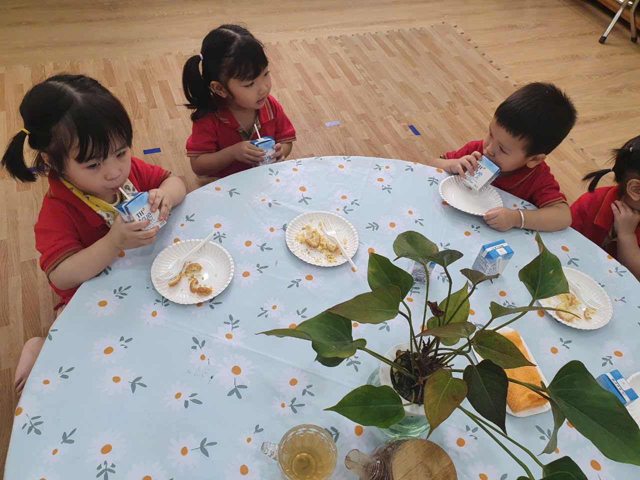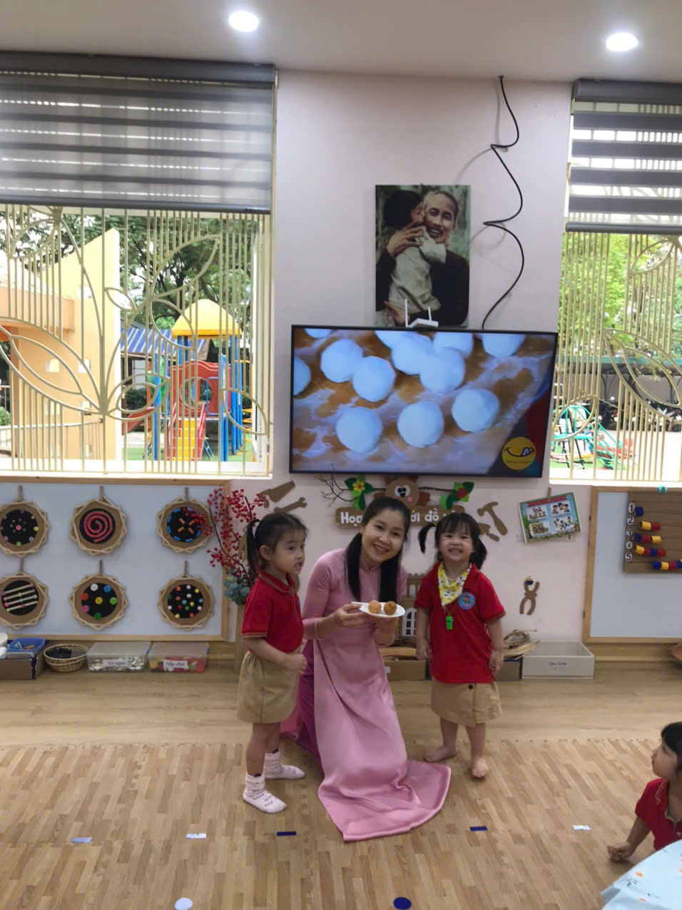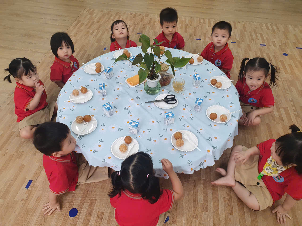 Hoạt động này không những nhận được sự thích thú hưởng ứng của các bé, mà còn nhận được sự ủng nhiệt tình từ phía phụ huynh. Đến với buổi khám phá, các con được trò chuyện về nguyên liệu để làm nên những chiếc “Bánh rán mật - Bánh rán đường”nhỏ xinh: như bột mì, trứng, sữa, nhân đậu xanh, đường, mật… và cách làm nên những chiếc bánh rán mật màu nâu óng ánh ngọt đậm, những chiếc bánh rán đường bao quanh đượm vị nhân đậu xanh thơm ngon.