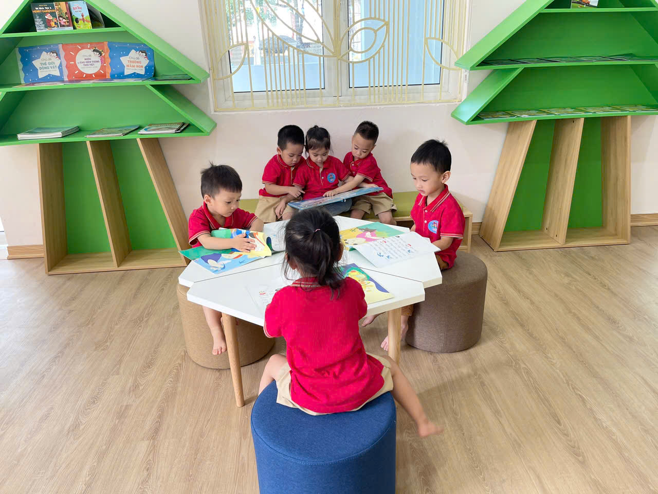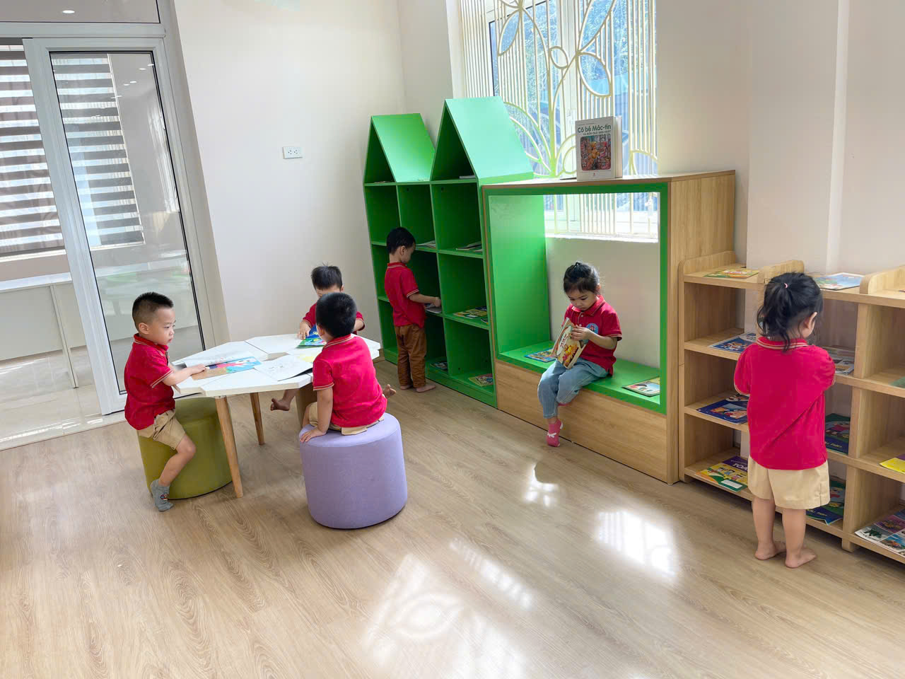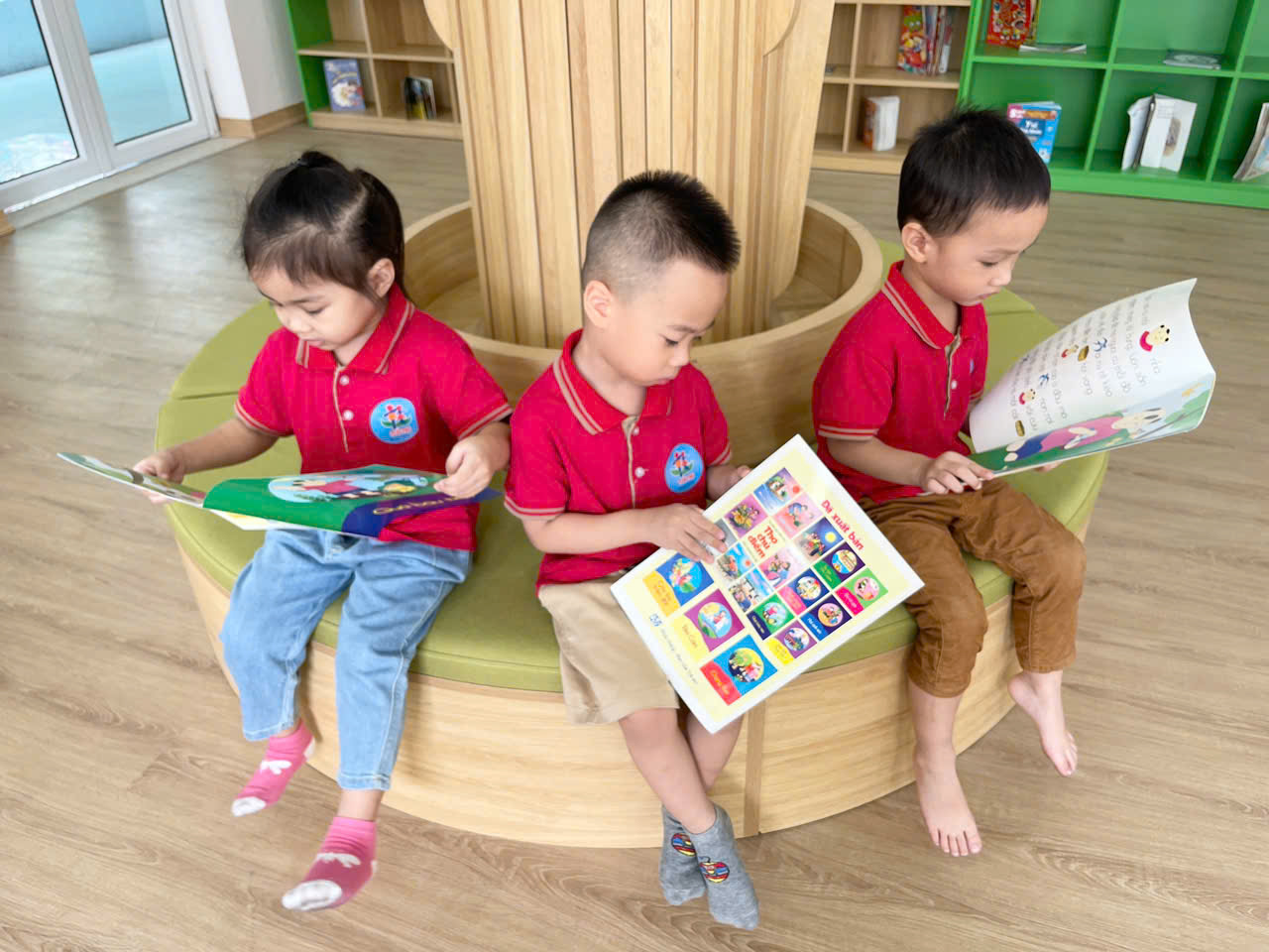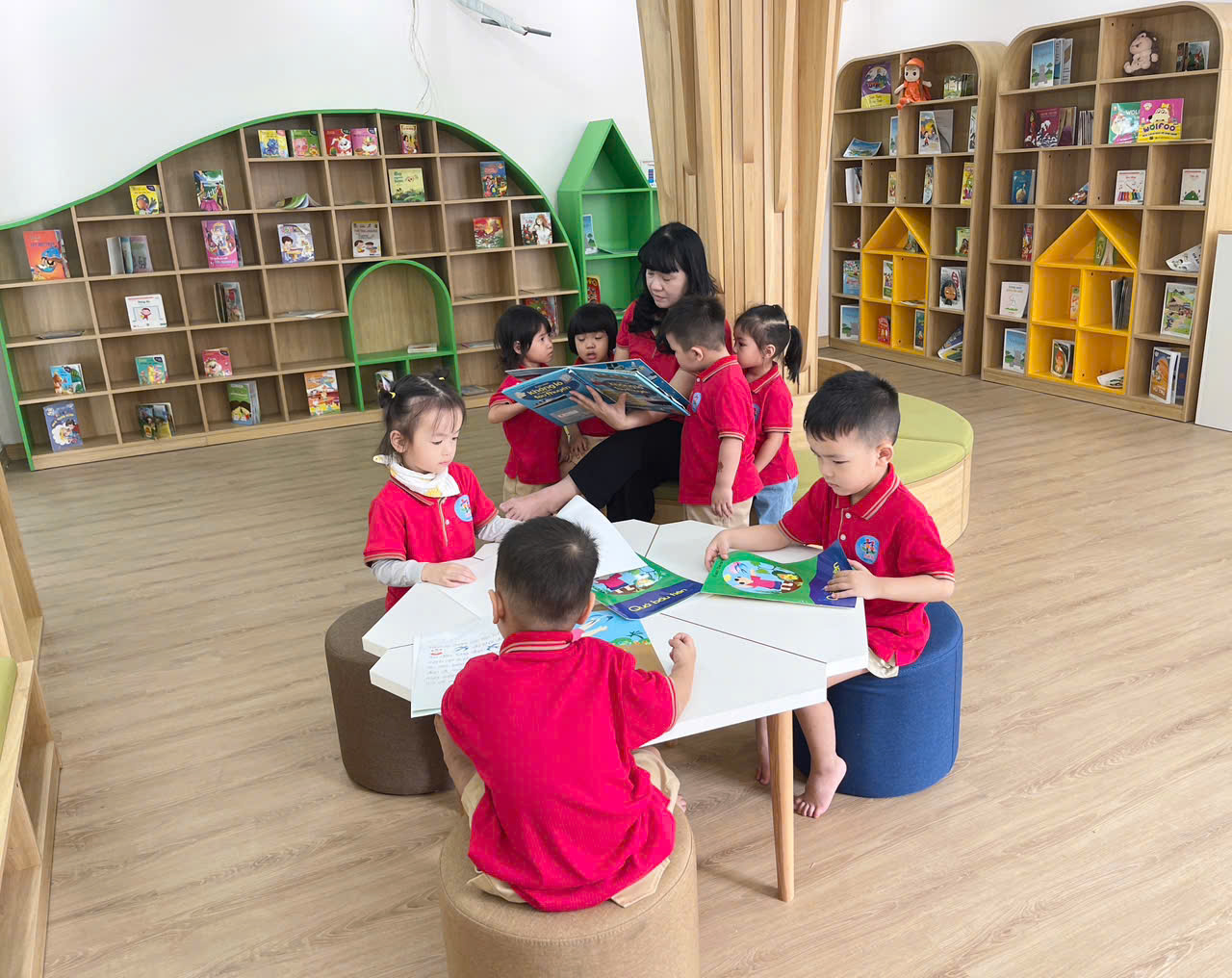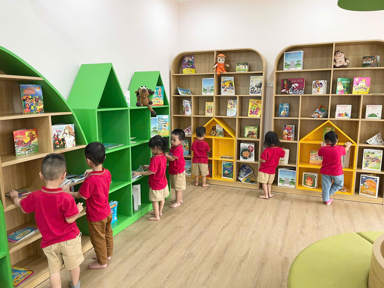 Tại đây, các bé sẽ được chọn chọn những cuốn sách yêu thích, cùng nghe cô giáo kể chuyện và đắm mình vào những câu chuyện lý thú.
