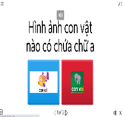 Trò chơi 2: Đố vui (Sử dụng phần mềm wordwall chọn trò chơi: Quiz, Trẻ sẽ tìm hình ảnh con vật nào có từ phía dưới chứa chữ a, â)