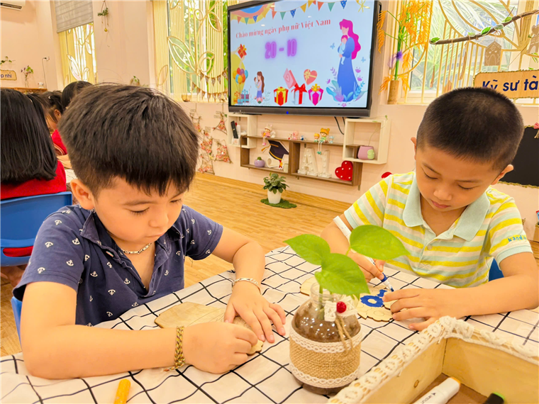 Sáng ngày 16/10/2024, trường MG Tuổi Thơ kết hợp với trung tâm Sky Art tổ chức cho các bé được tham gia làm quà “Tặng Bà, tặng Mẹ, tặng Cô nhân ngày Phụ nữ Việt Nam 20/10”.