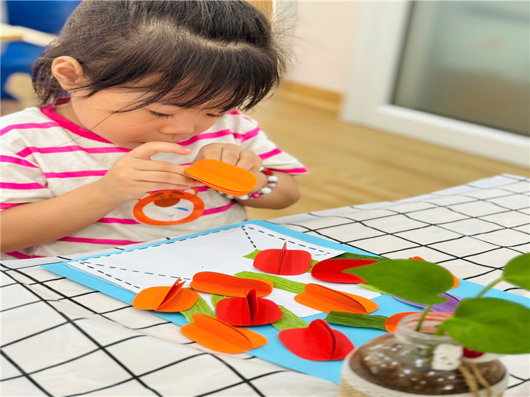 2. Bé làm thiệp bình hoa:
