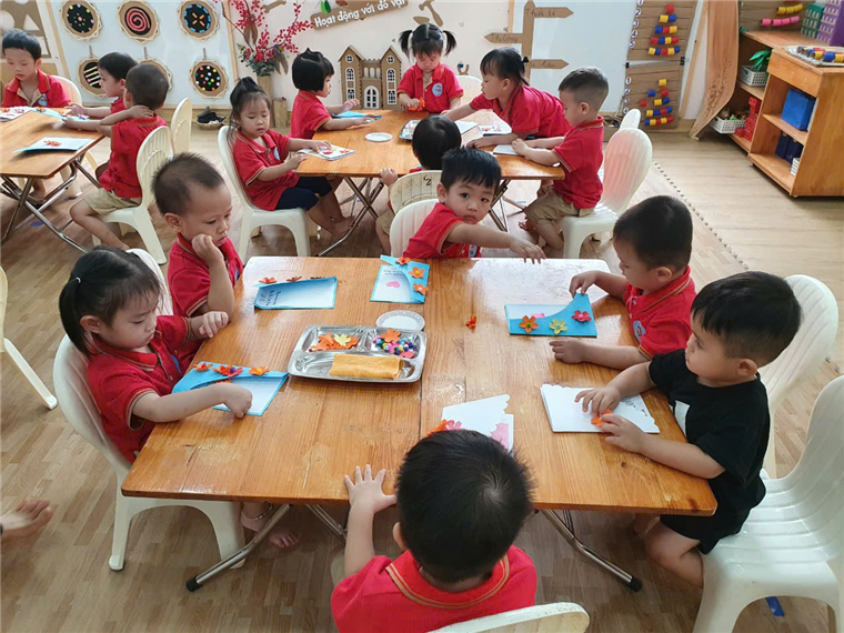 Các Bé lớp MGL A2 nghe các Cô hướng dẫn cách thực hiện sản phẩm tạo hình