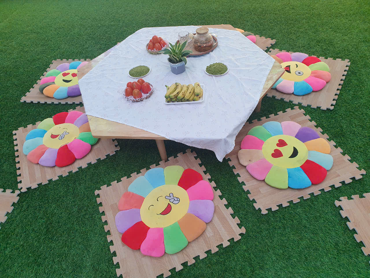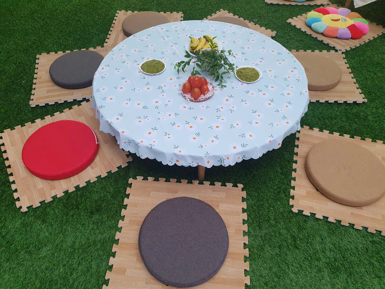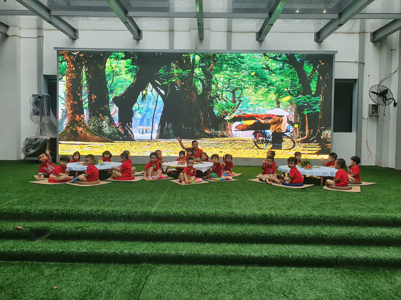 Hôm nay sân trường Tuổi Thơ tràn ngập sắc màu và hương vị của cốm non, chuối ngọt, hồng đỏ. Tất cả đã tạo nên 1 nét đặc trưng của mùa thu Hà Nội.