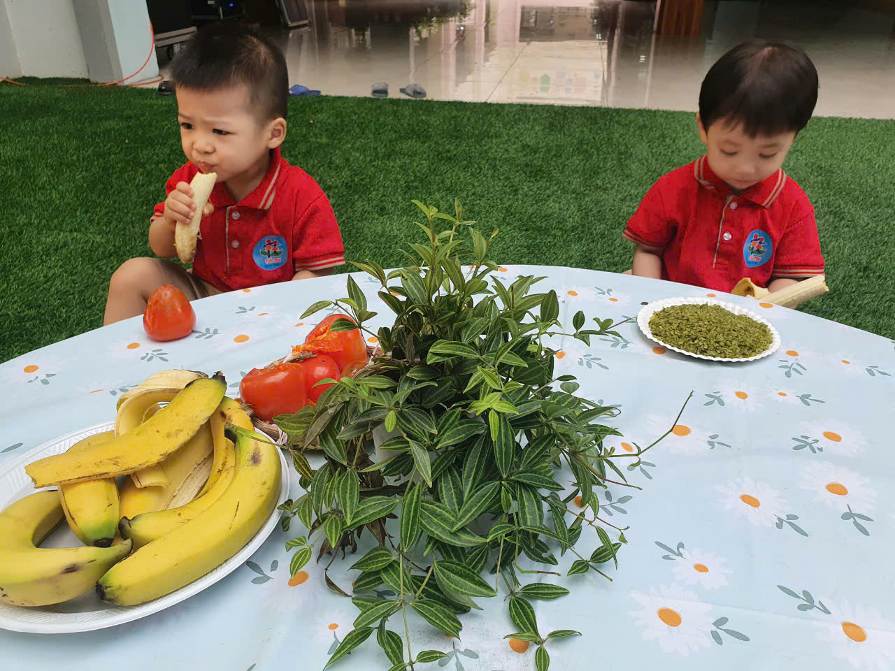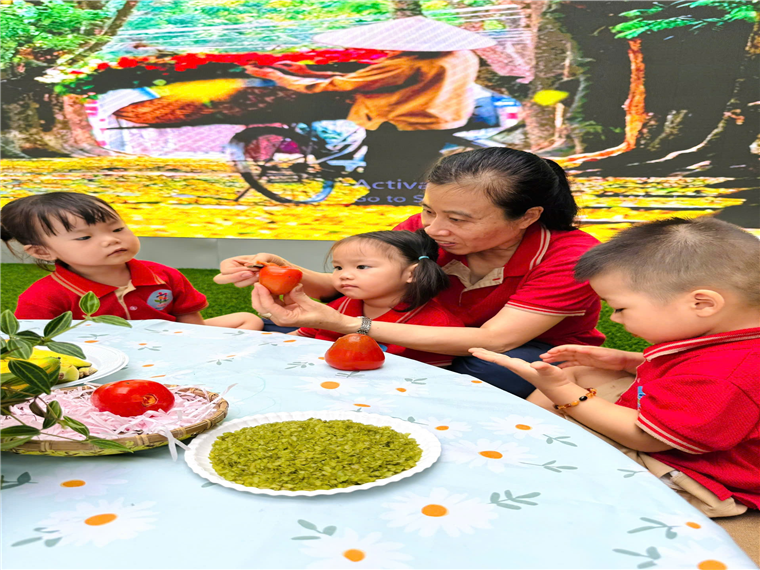 Đôi bàn tay cũng được dịp thể hiện sự khéo léo cùng hoạt động ẩm thực “ Chuối chấm cốm ” “Bóc vỏ cho hồng” và niềm vui được thưởng thức thành quả của chính mình