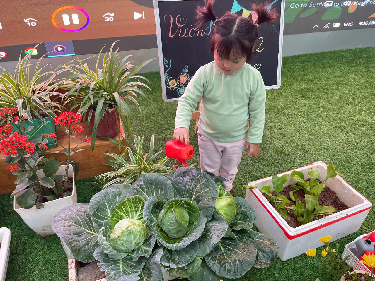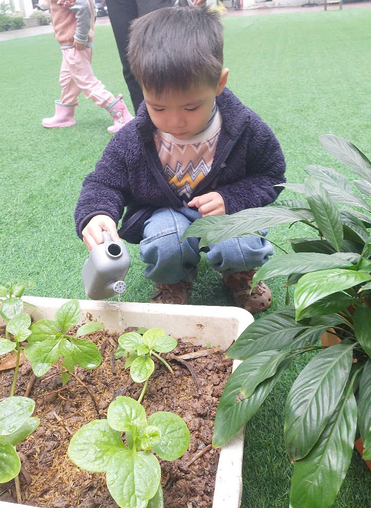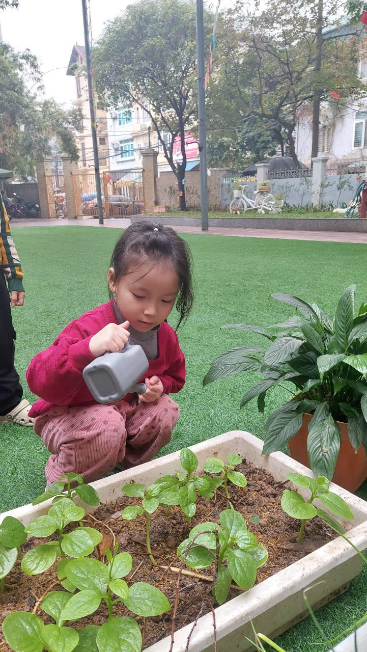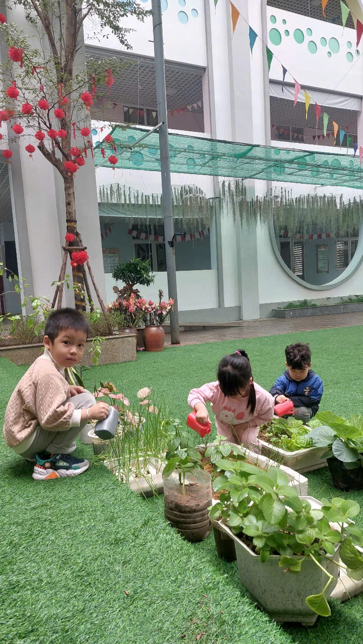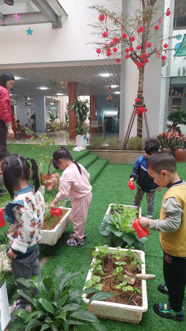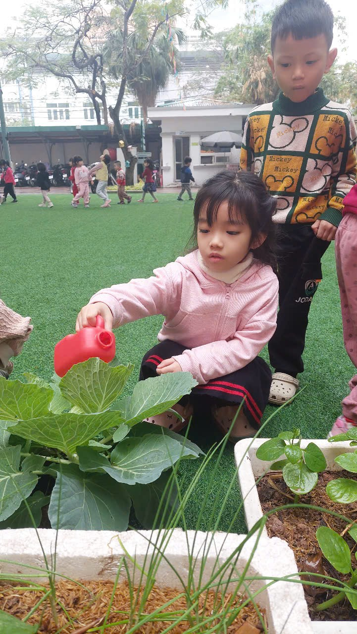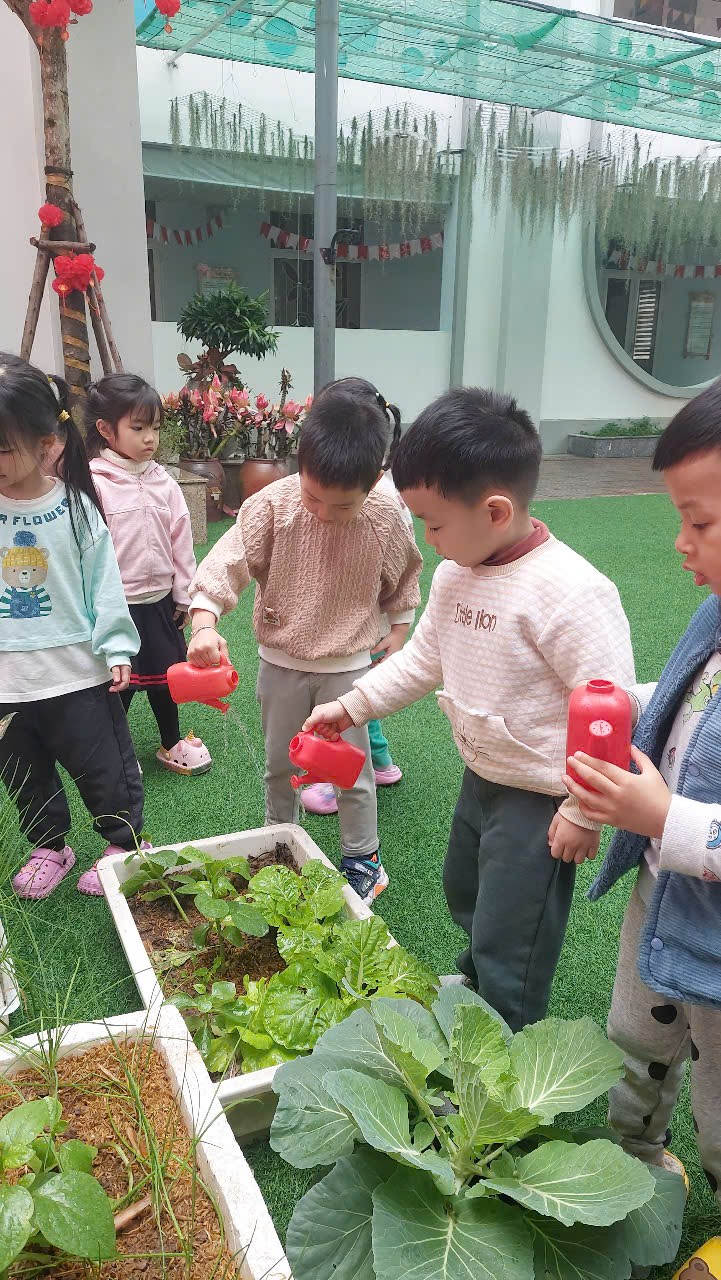 *Các Bé lớp MGB C2 cùng nhau chăm sóc và ngắm nhìn các bạn rau xanh đáng yêu!