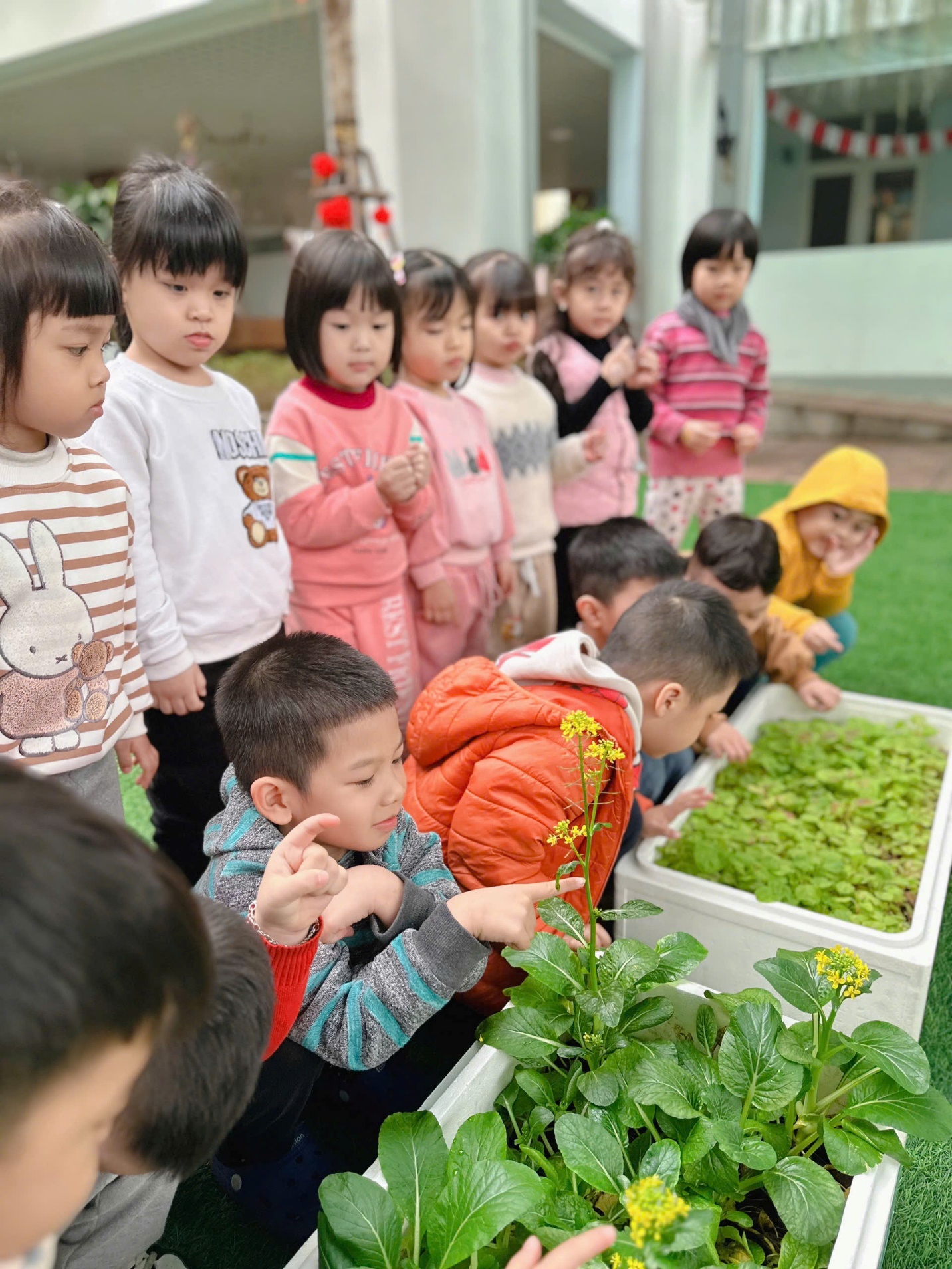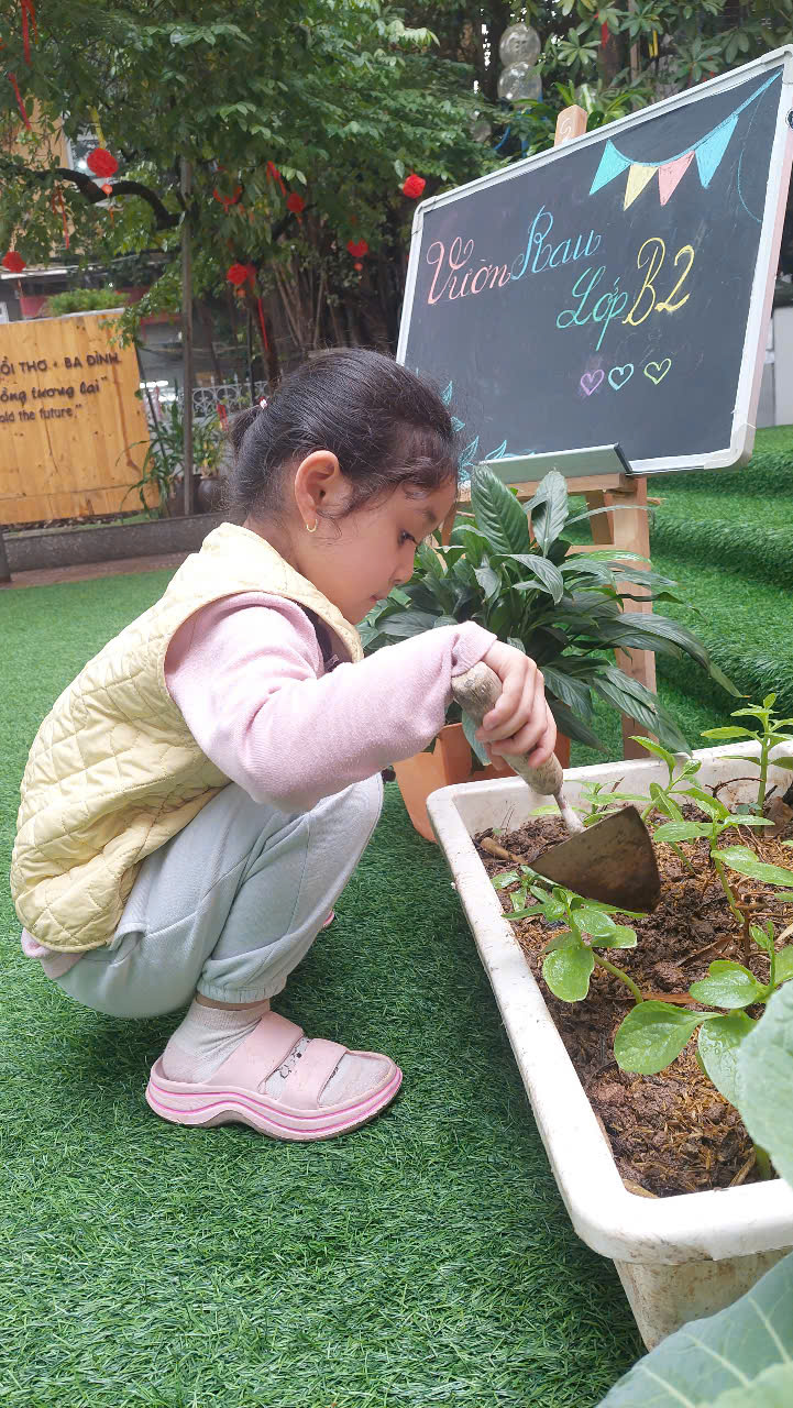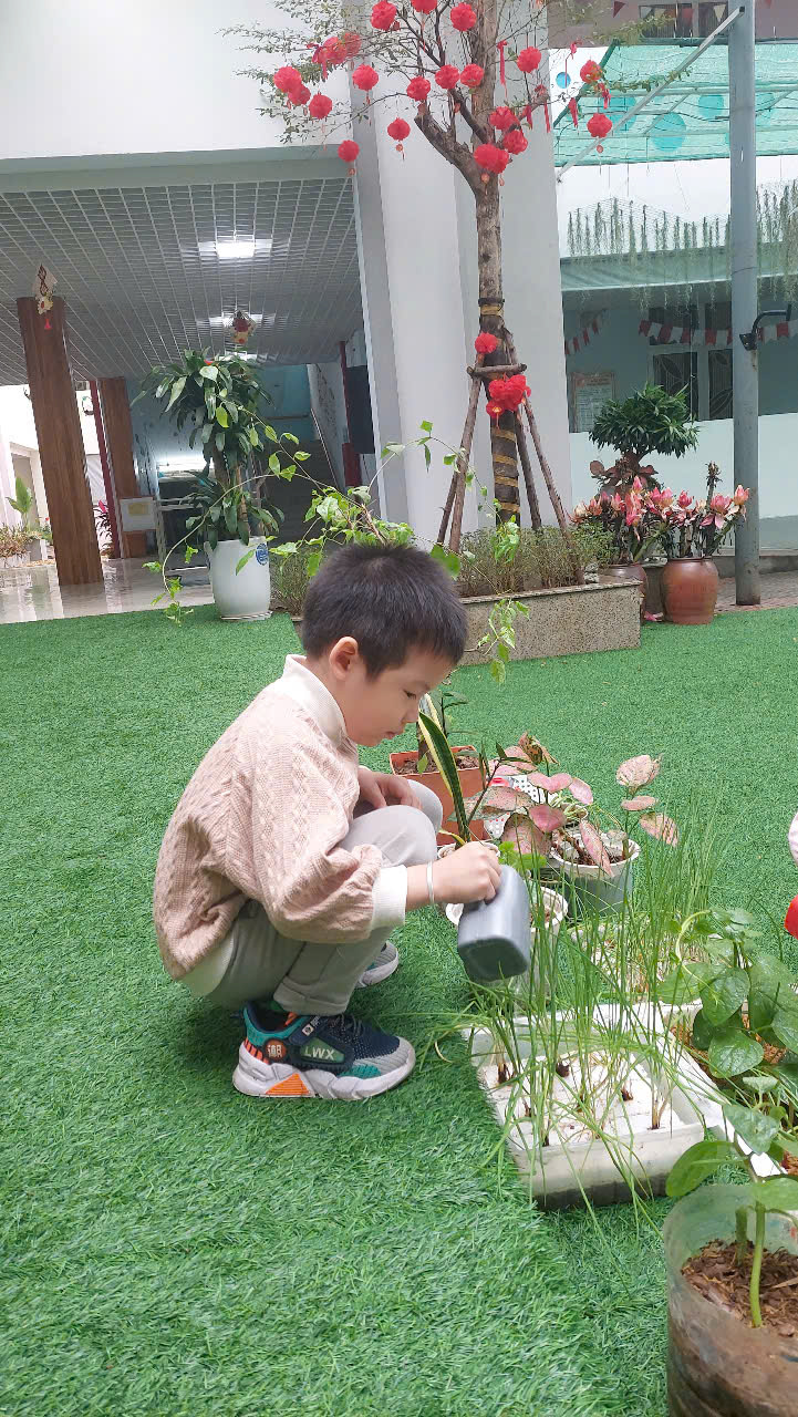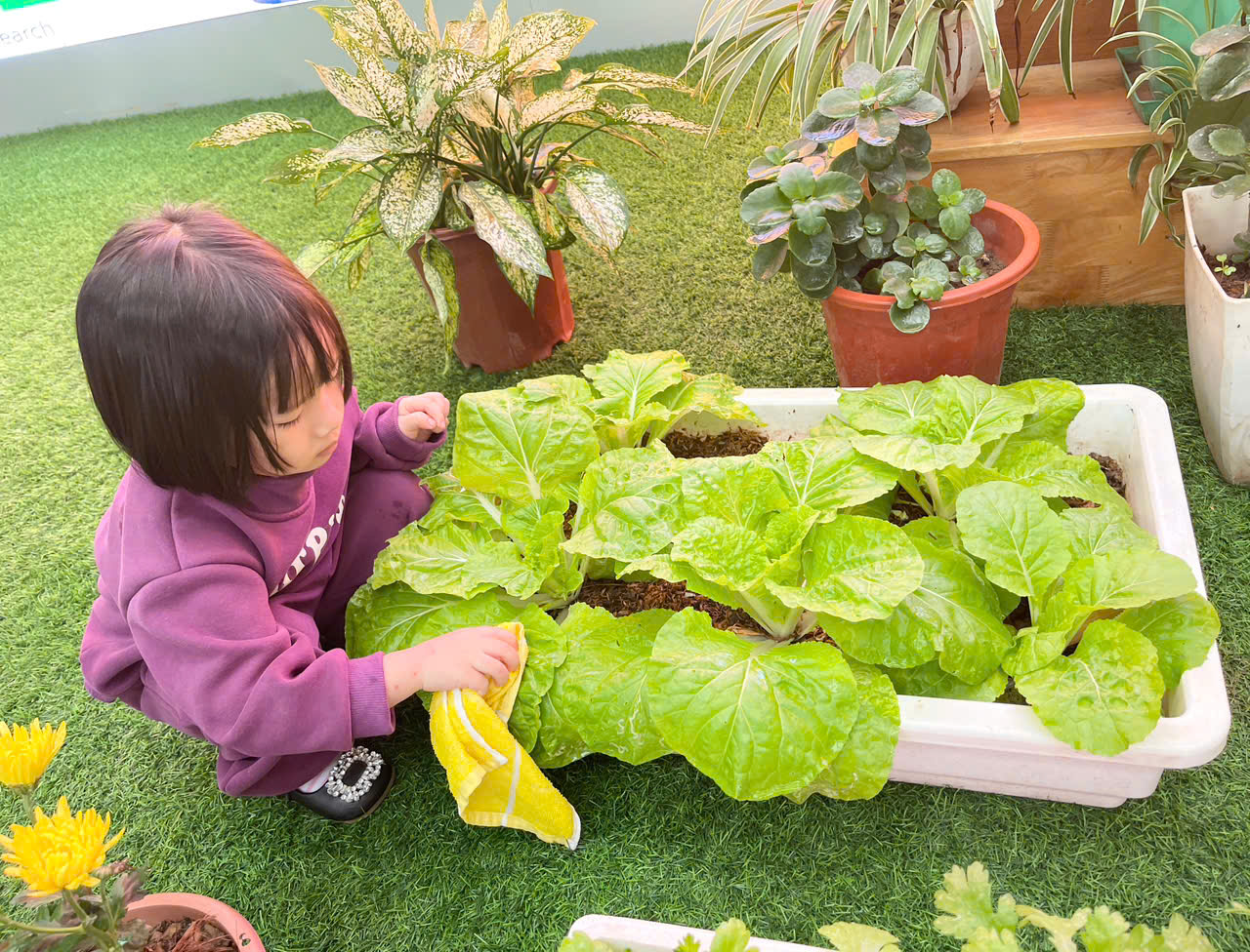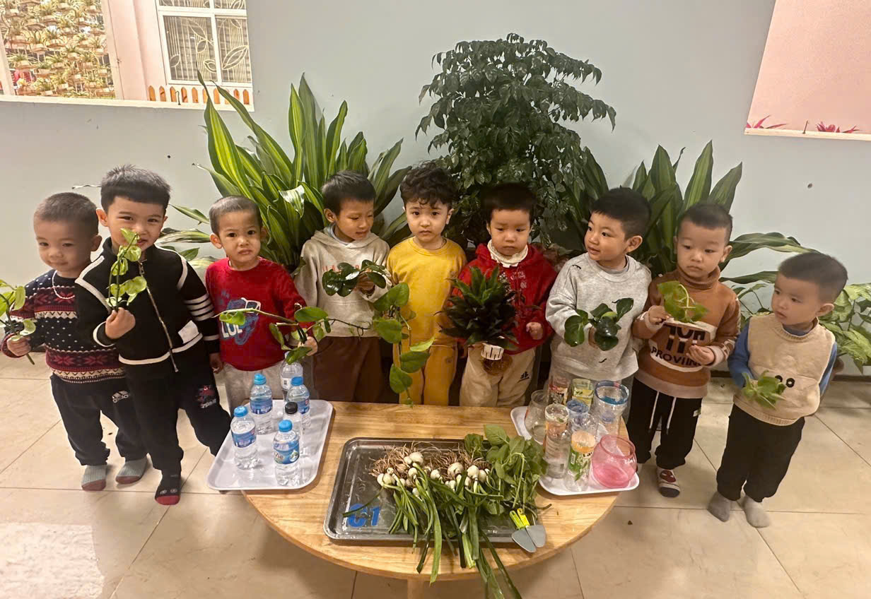 *Các Bé lớp MGB C2 cùng nhau chăm sóc và ngắm nhìn các bạn rau xanh đáng yêu!