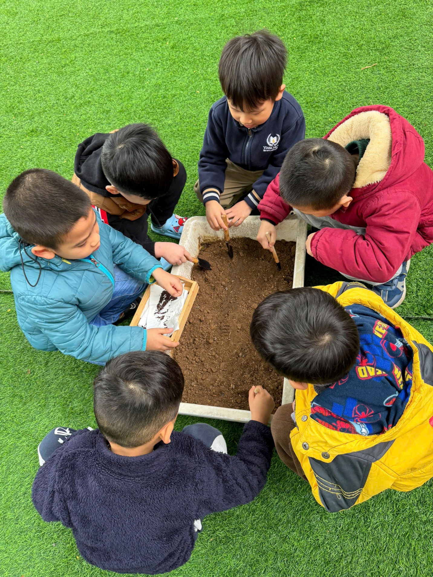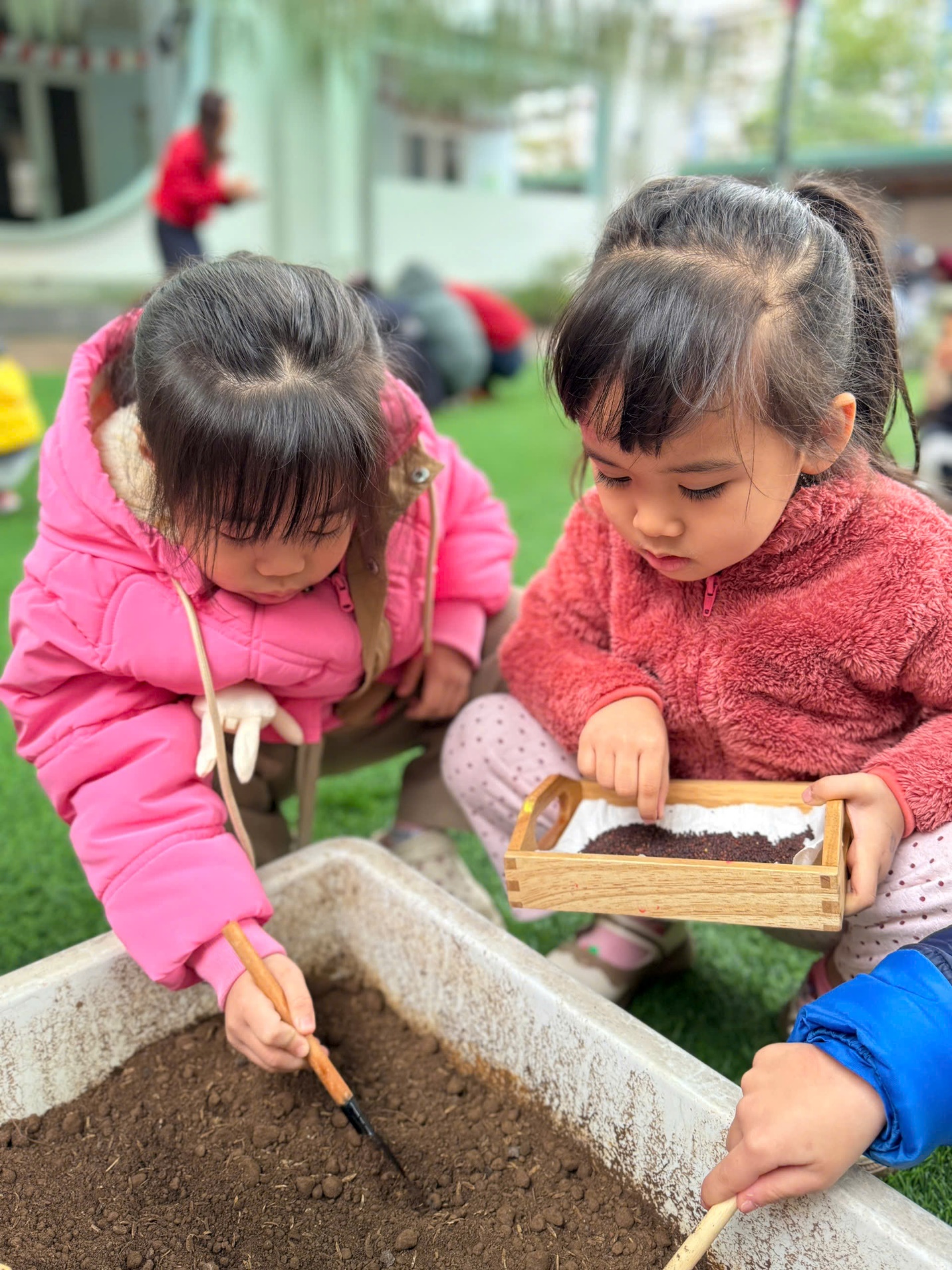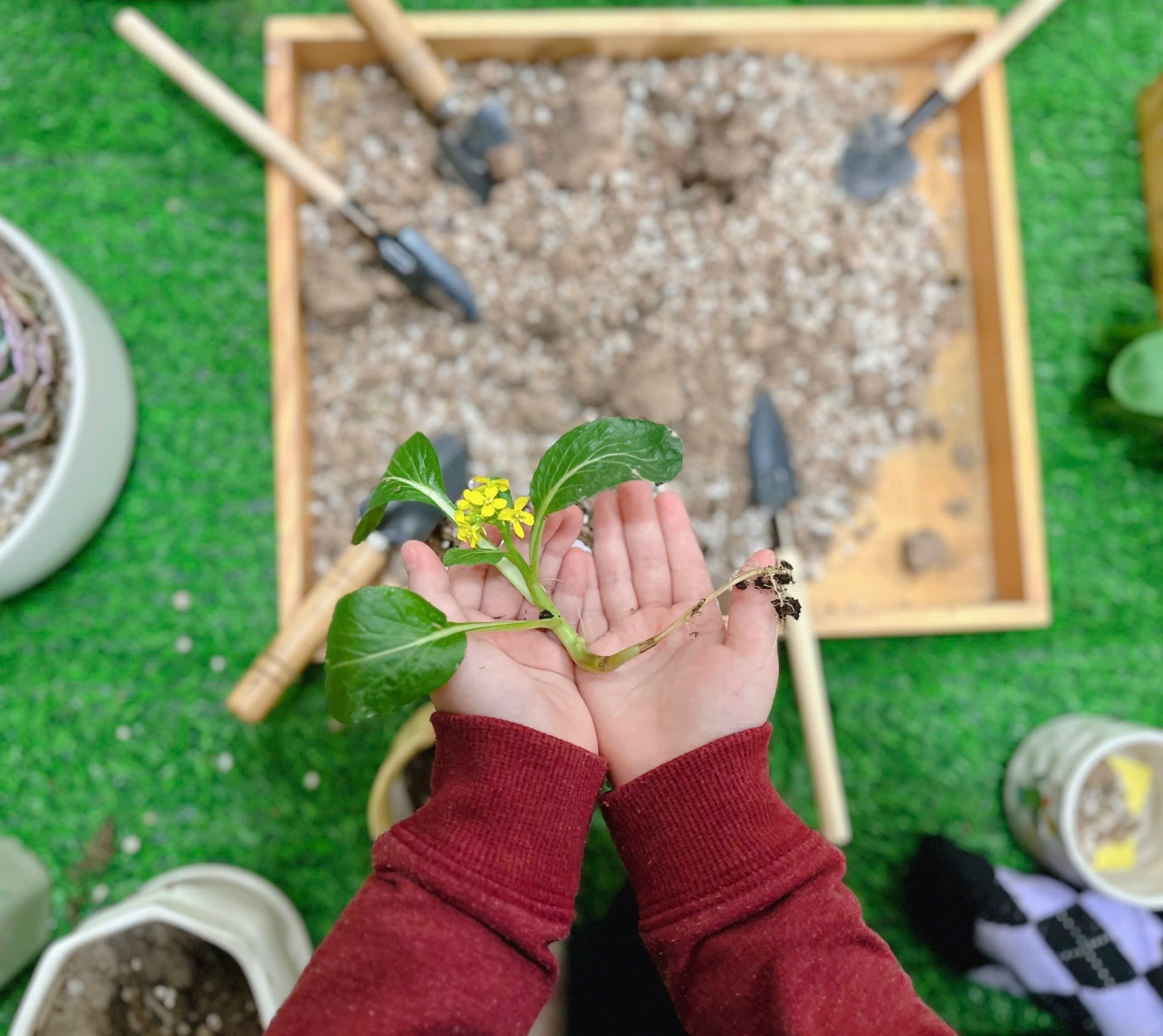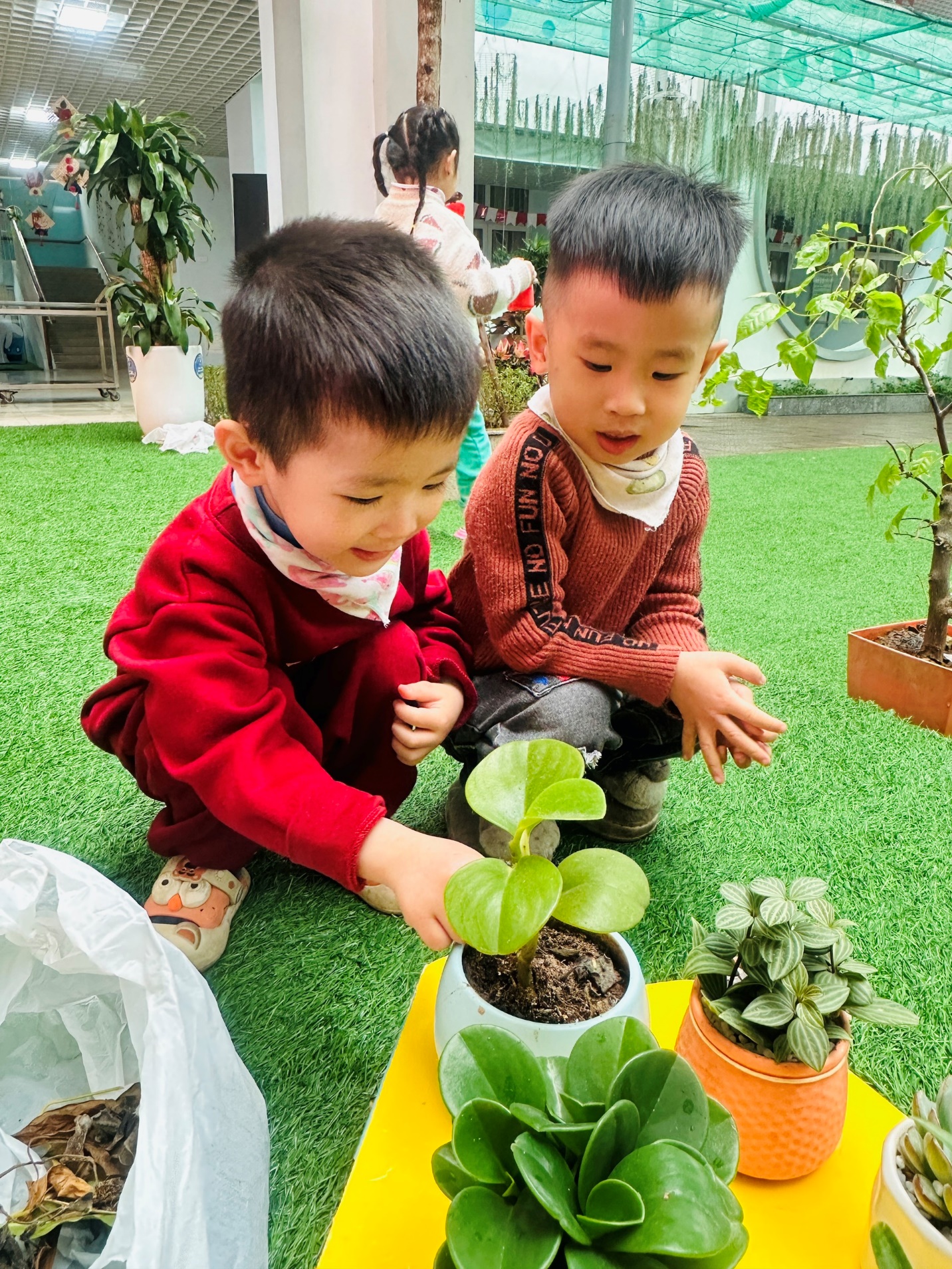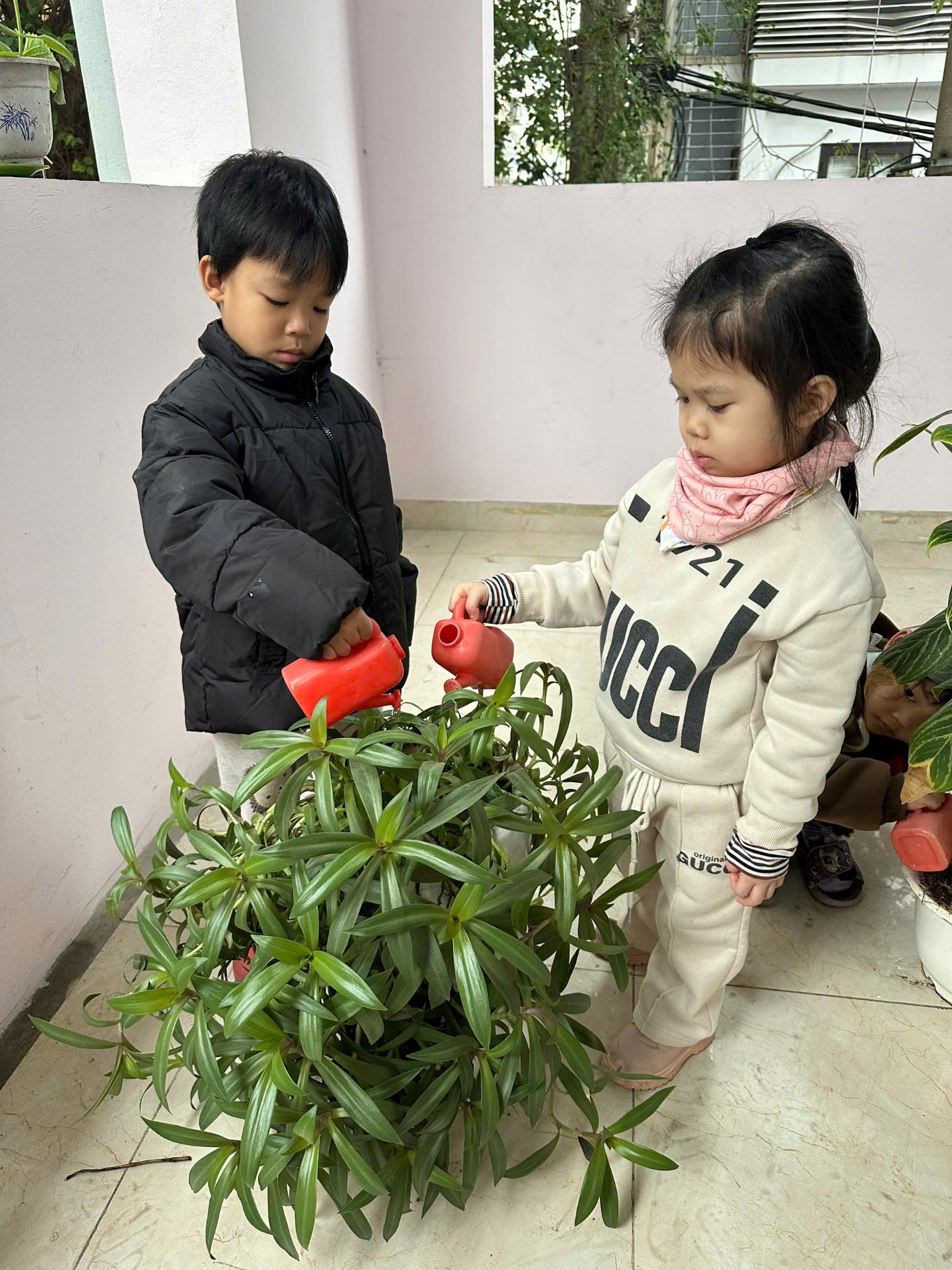 *Các Bé lớp MGB C2 cùng nhau chăm sóc và ngắm nhìn các bạn rau xanh đáng yêu!