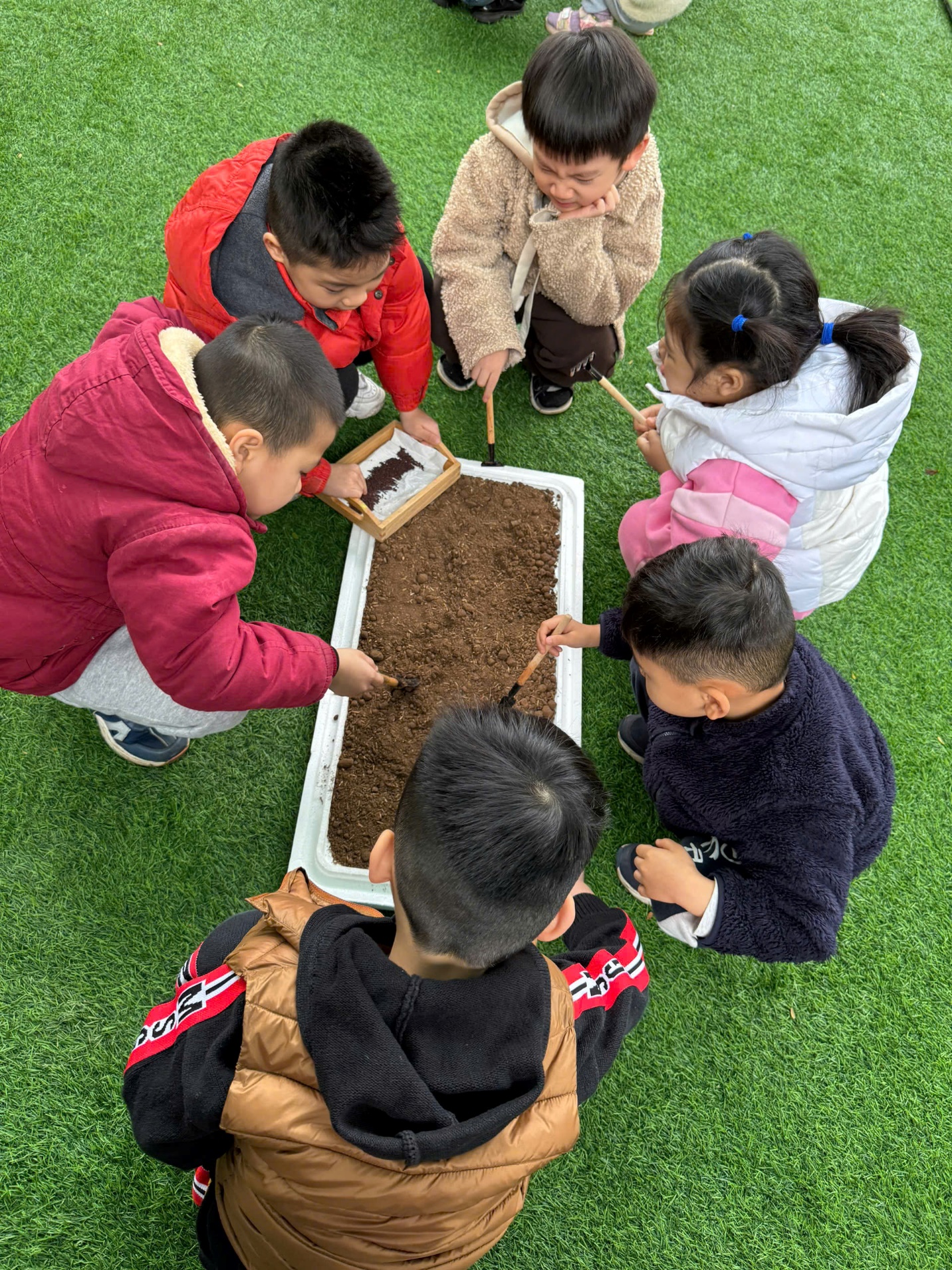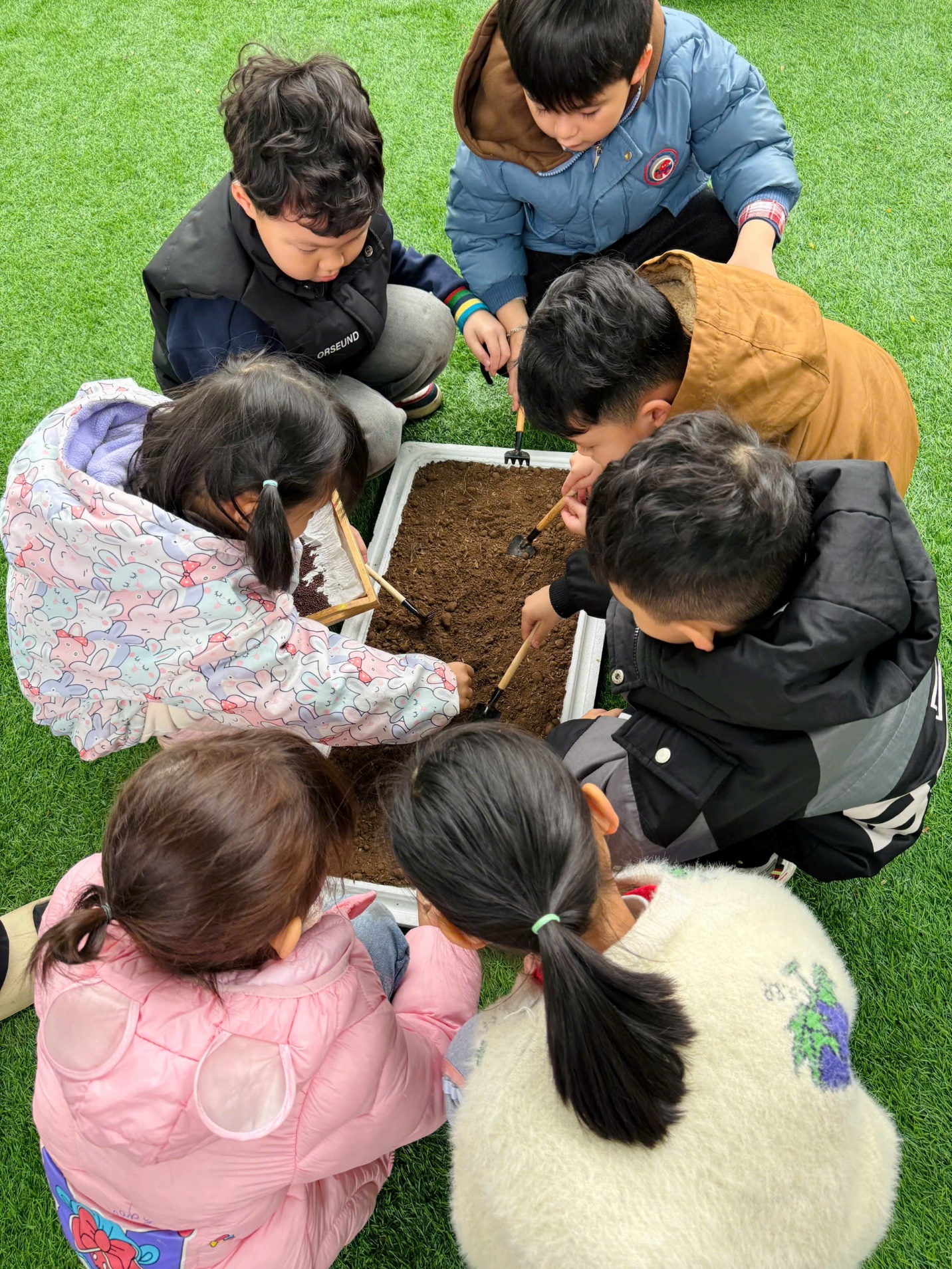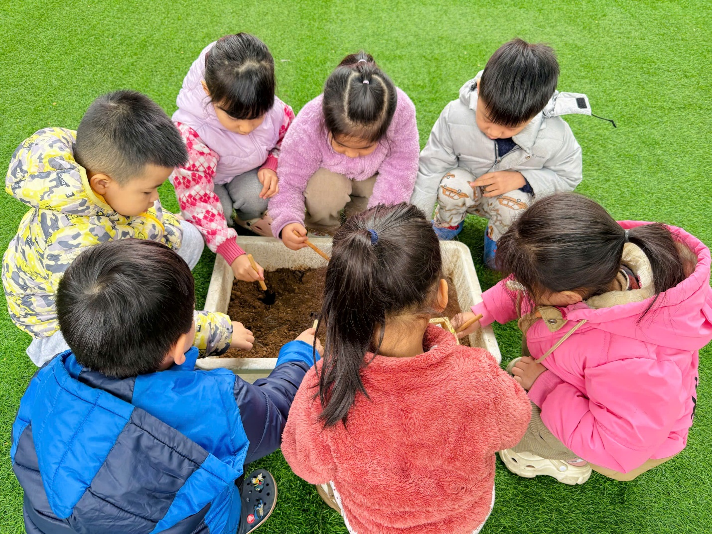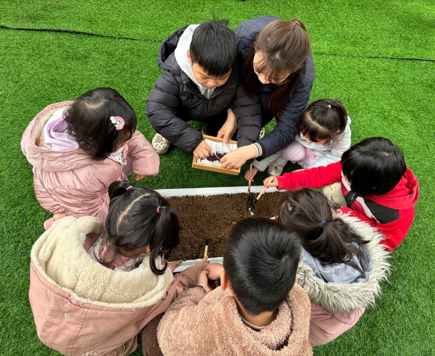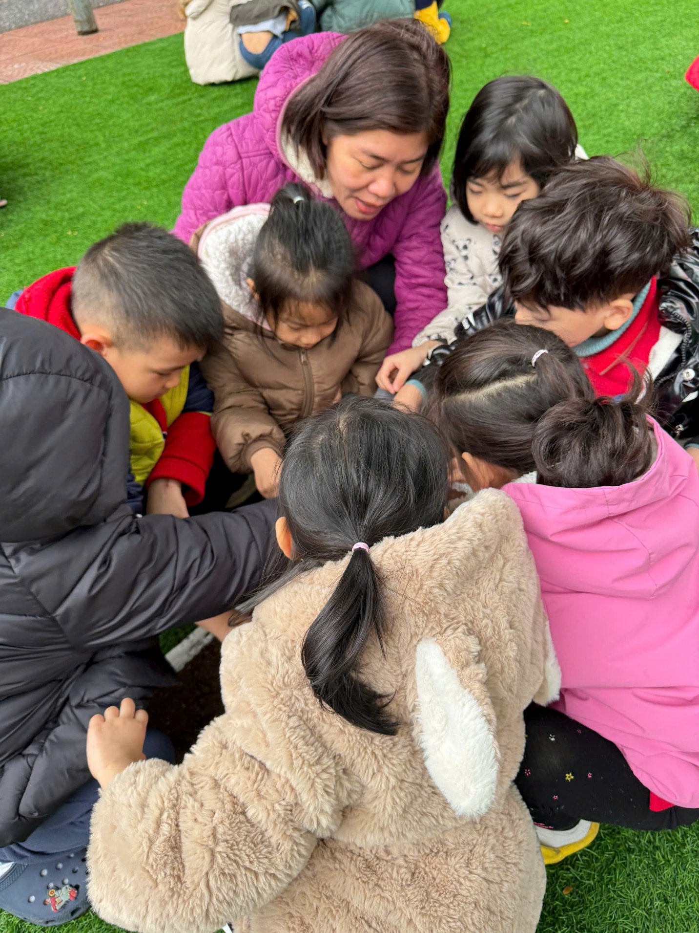 *Các Bé lớp MGB C2 cùng nhau chăm sóc và ngắm nhìn các bạn rau xanh đáng yêu!
