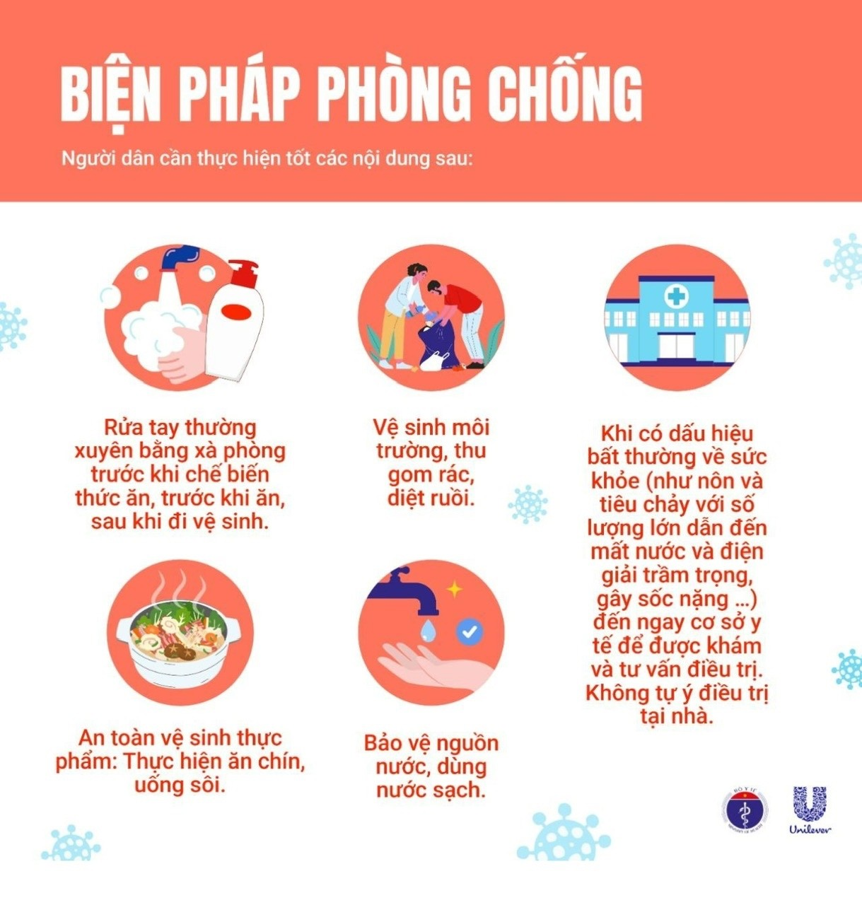 1. Rửa tay thường xuyên bằng xà phòng, ăn chín uống sôi, sử dụng nguồn nước sạch.