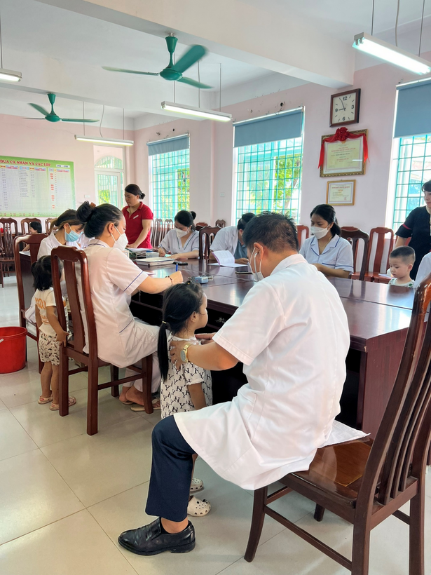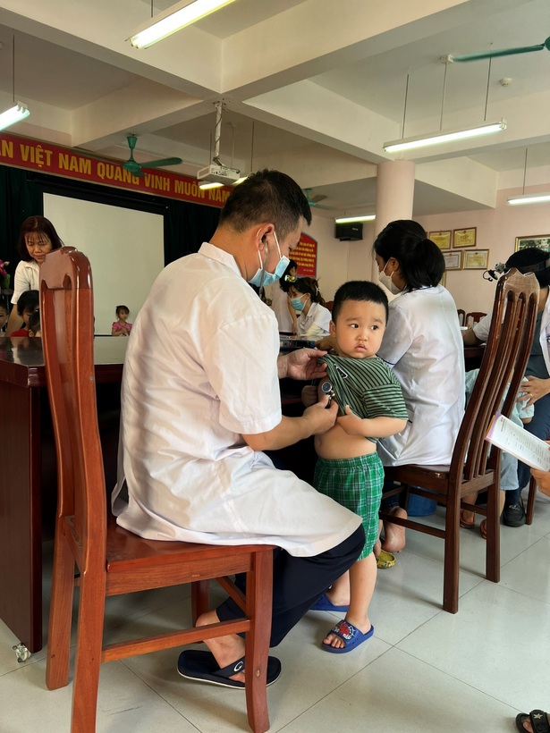 Dưới đây là một số hình ảnh của các y, bác sĩ và các bé trong buổi khám bệnh: