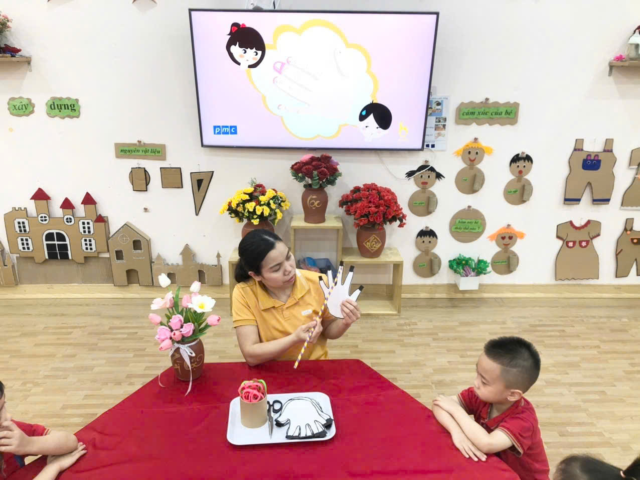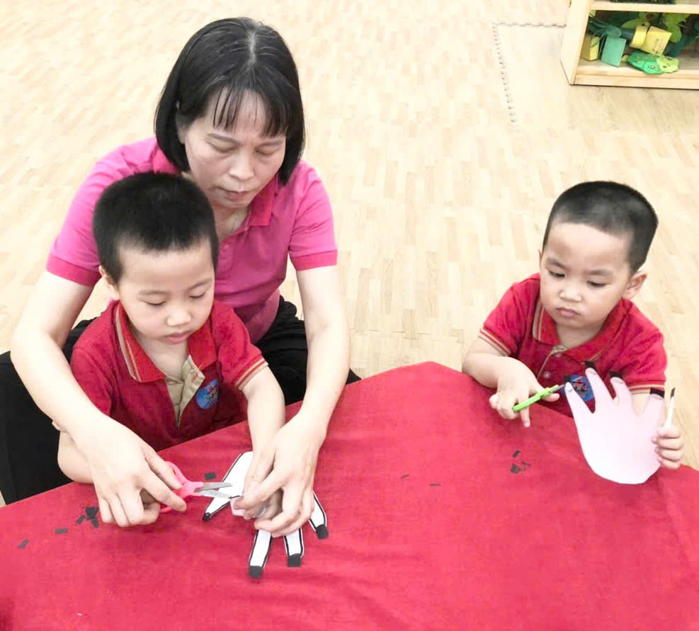 Thêm nữa, việc vận dụng đưa nội dung: Kỹ năng cầm kéo và tập cắt móng tay trên giấy đã giúp các con hiểu được vì sao cần vệ sinh móng tay.