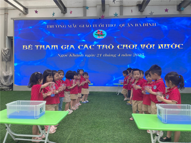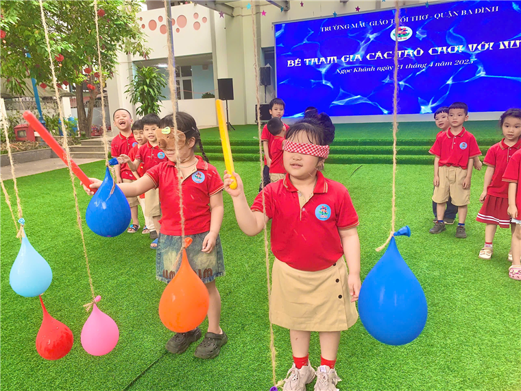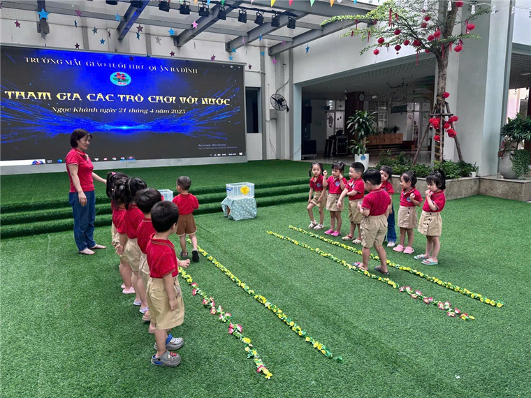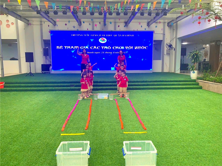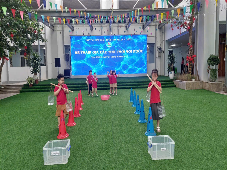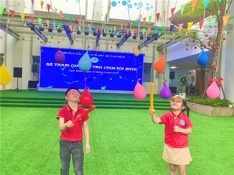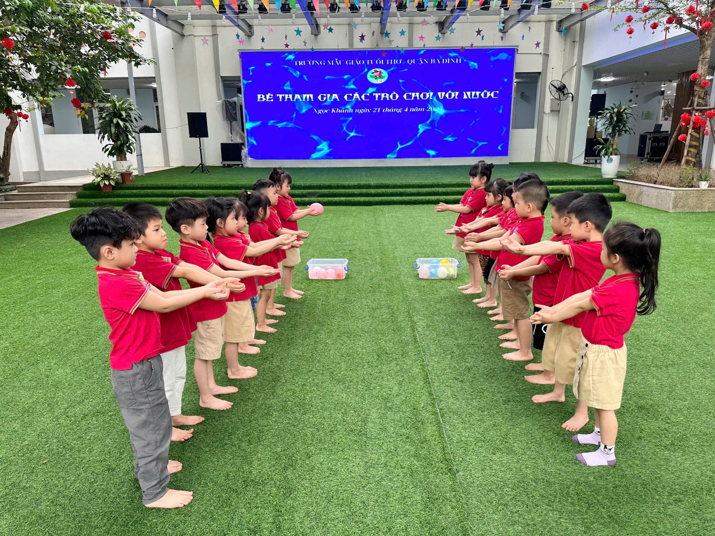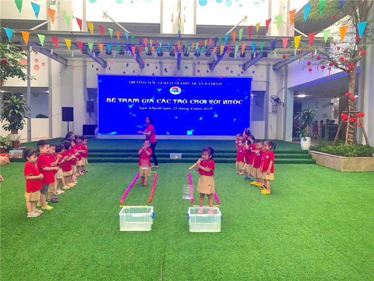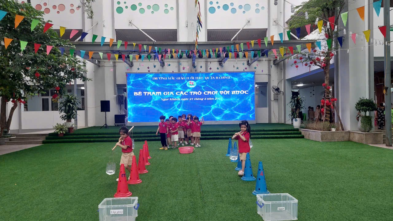 Với sự chuẩn bị chu đáo từ phía nhà trường và giáo viên, sân trường đã được biến hóa thành một không gian vui chơi ngập tràn sắc màu và tiếng cười. Các trò chơi phong phú như: tung bóng nước, thi đổ nước vào chai, chuyển nước cùng đồng đội, gánh nước đi trong đường ziczac... đã thu hút sự hào hứng và tham gia nhiệt tình của các bé.