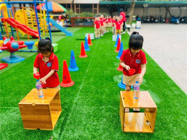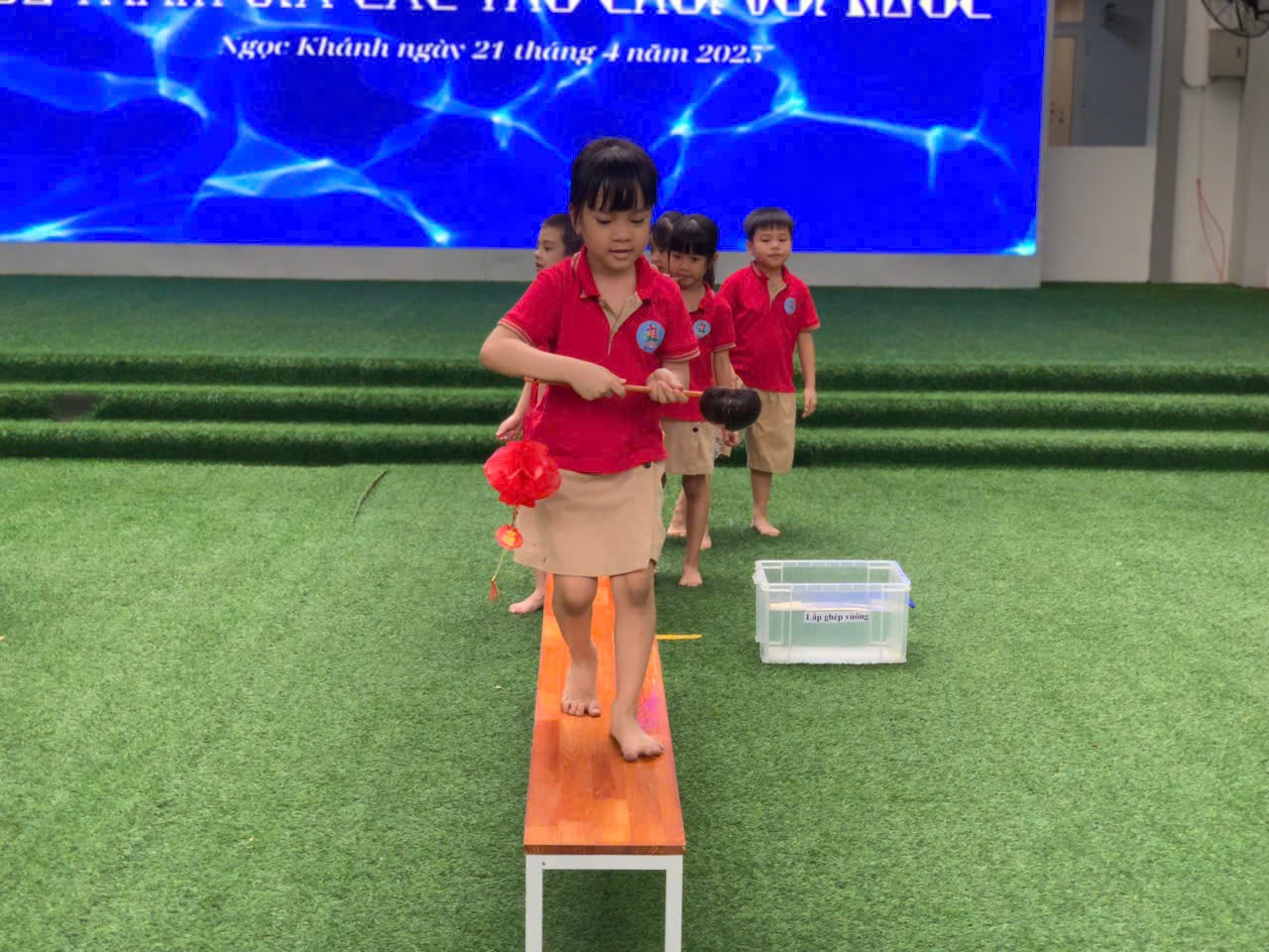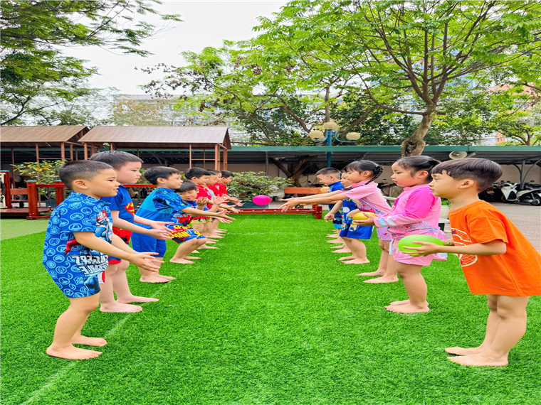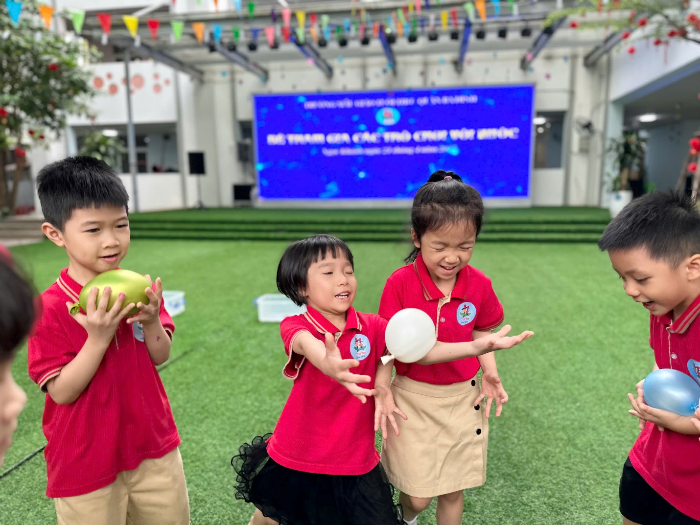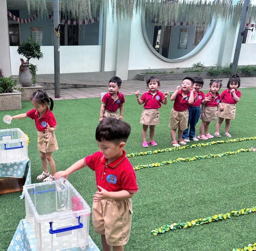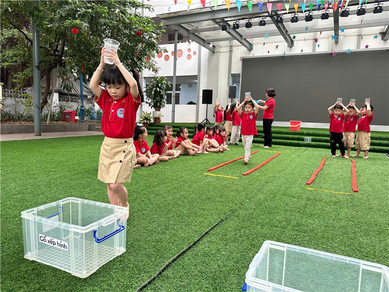 Hoạt động không chỉ để lại những khoảnh khắc vui nhộn, tiếng cười rộn ràng, mà còn là cơ hội để các bé học cách chia sẻ, giúp đỡ nhau và gắn kết bạn bè.