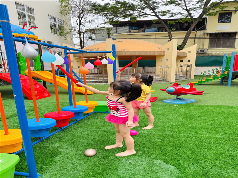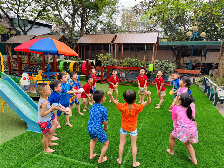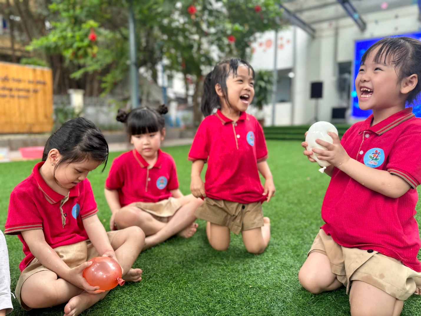 Các bé lớp MGL A1 chơi tung và bắt bóng nước