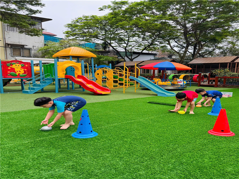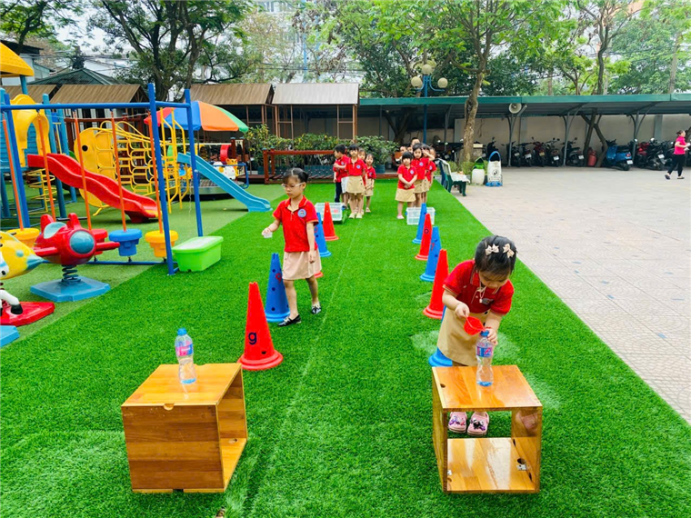 Các bé lớp MGL A1 chơi lăn bóng nước theo đường ziczac