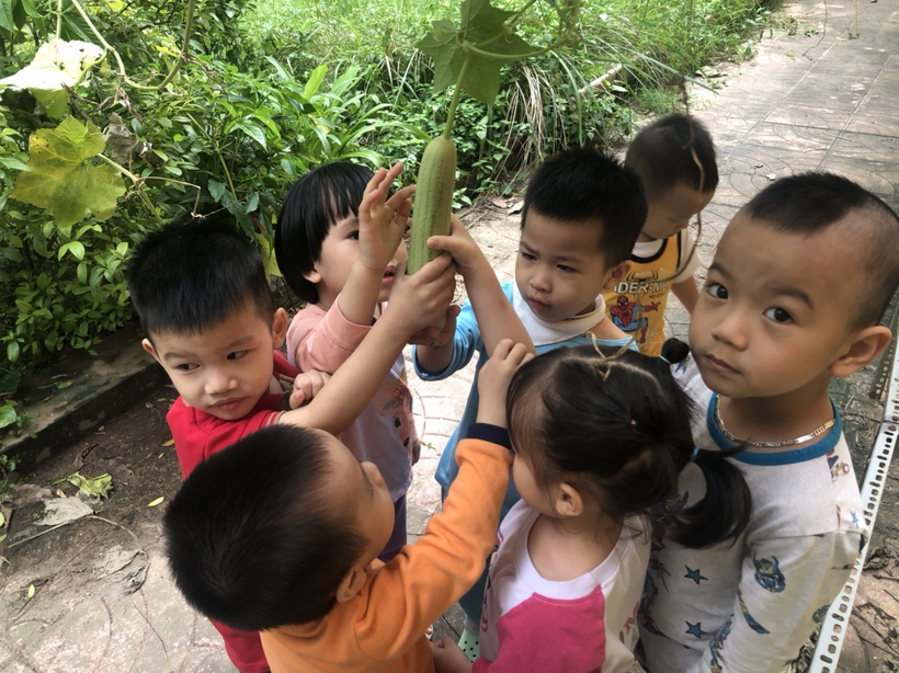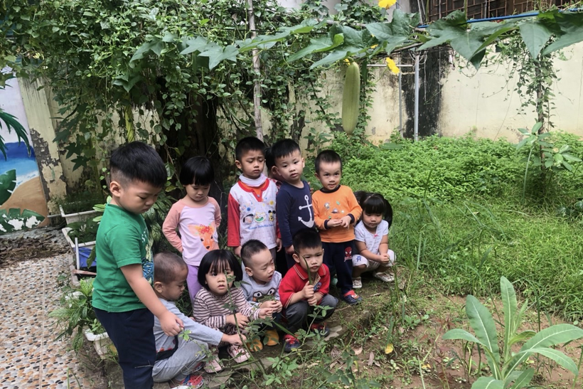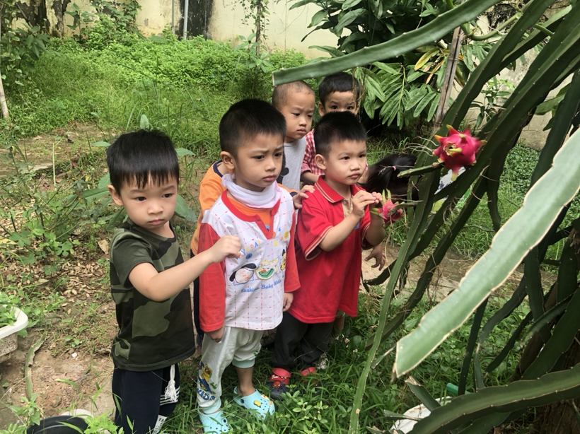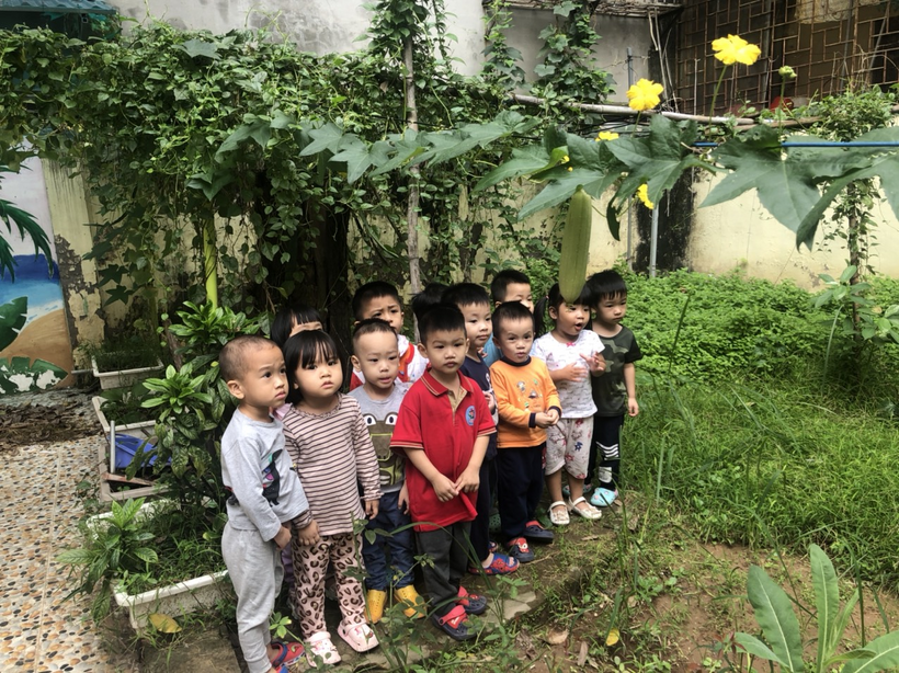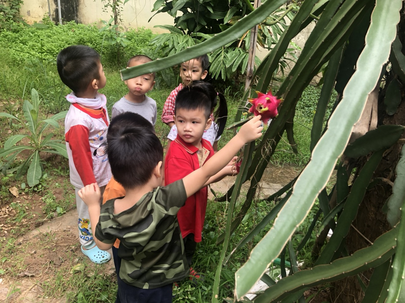 Dưới đây là 1 số hình ảnh các bé lớp C2 khám phá 1 số loại cây trong vườn trường: