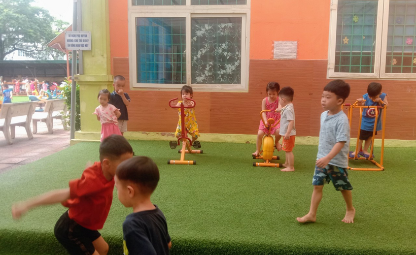 Trạm Y tế phường Giảng Võ phối hợp phun khử khuẩn tại Trường mẫu giáo Tuổi Thơ
