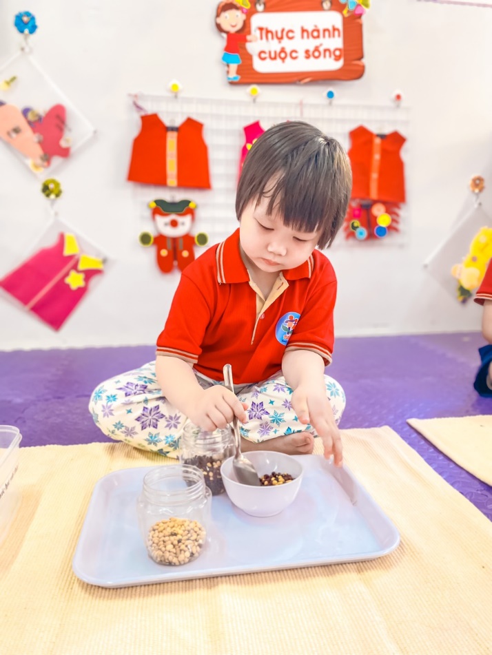 Bé chơi xúc hạt
