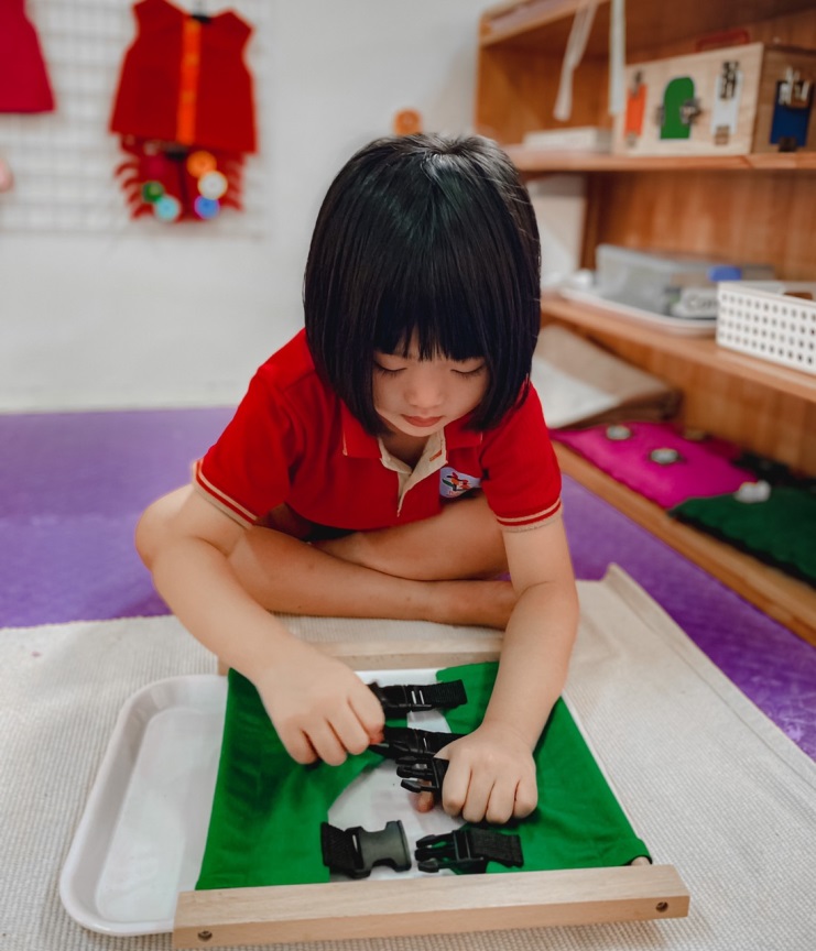 Bé thực hành cài khóa