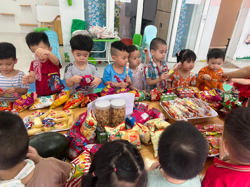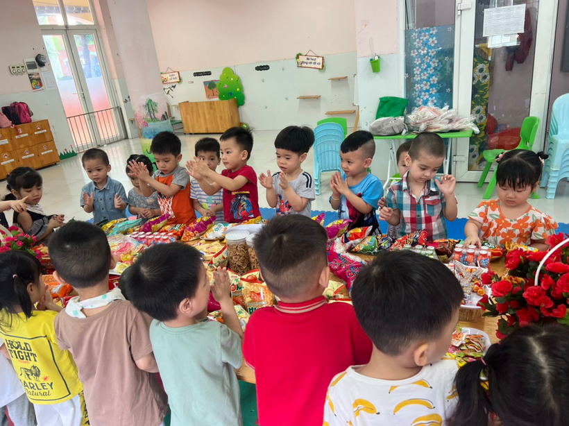 Trong buổi liên hoan các bé được tham gia các trò chơi, được biểu diễn các bài hát, cùng nghe cô kể những chuyện vui rồi cùng nhau trò chuyên, cười đùa vui vẻ cùng các bạn. Đặc biệt cô giáo kịp ghi lại những bức ảnh rất đẹp, đó là những khoảnh khắc đáng nhớ của các con trong những năm học đầu tiên ở trường MG Tuổi Thơ thân yêu.