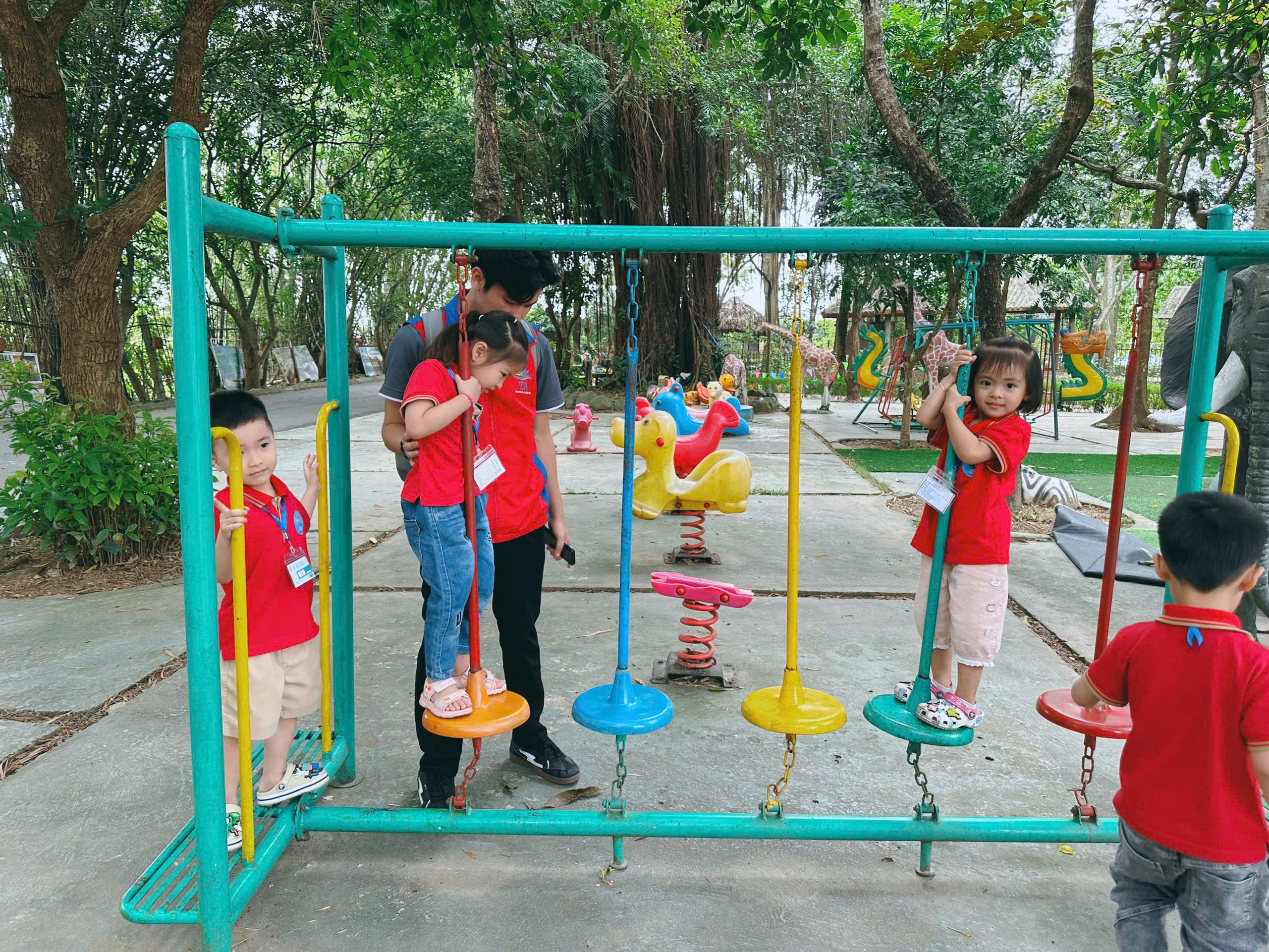 Ngay từ sáng sớm, không khí trong sân trường đã rộn ràng tiếng nói cười. Các bé háo hức trong bộ đồng phục, đội mũ du lịch xinh xắn, tay cầm tay bạn cùng cô giáo lên xe bắt đầu hành trình khám phá.