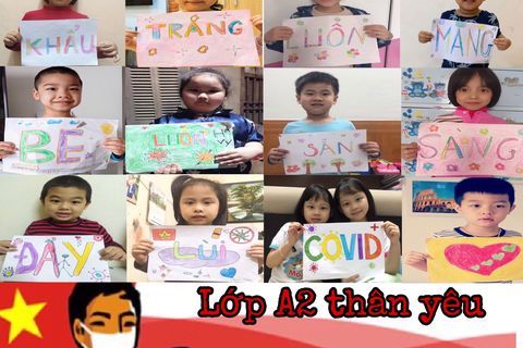 LỚP A2: Rửa tay đúng cách; Khẩu trang luôn mang; Bé luôn sẵn sàng; Đẩy lùi Covid.