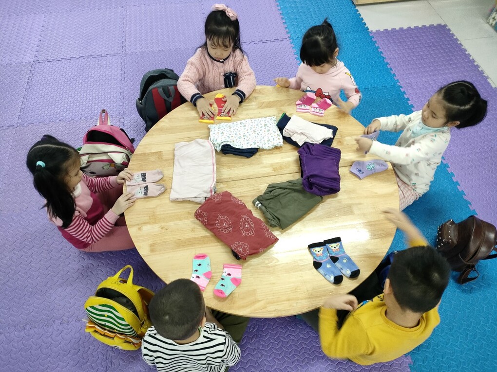 Các bé lớp MG Lớn A4 với kỹ năng gấp quần áo!