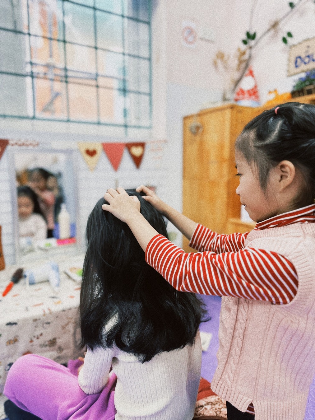 Các bé lớp MG Lớn A1 thực hành kỹ năng sống qua trò chơi đóng vai theo chủ đề.