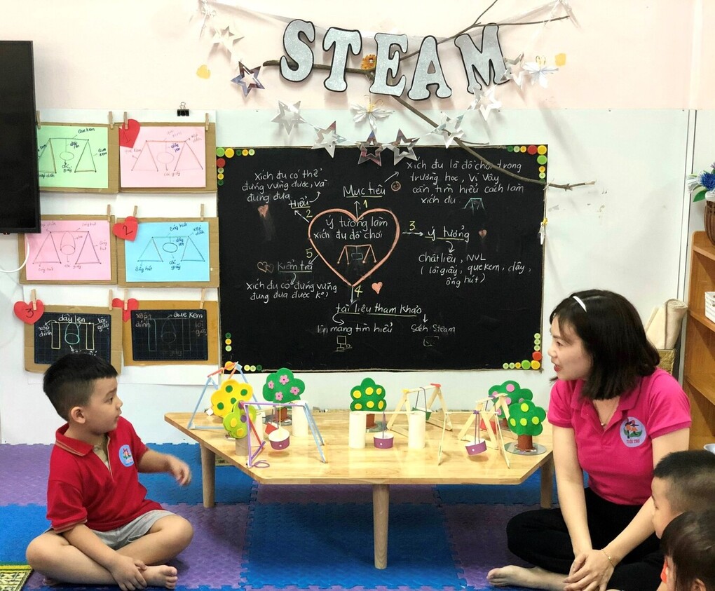 LỚP B4 VỚI HOẠT ĐỘNG STEAM: LÀM XÍCH ĐU ĐỒ CHƠI