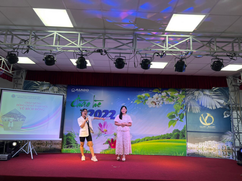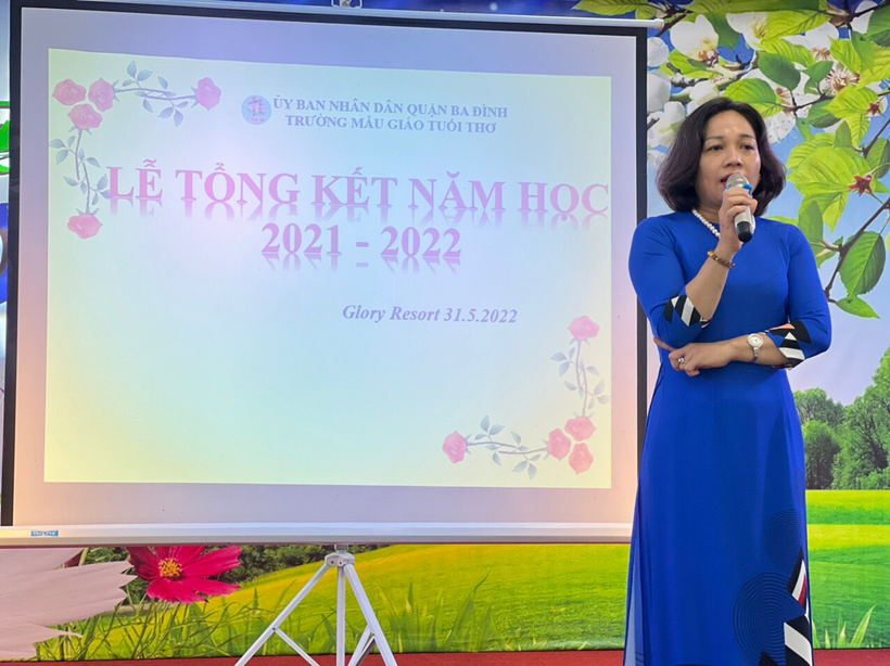 Thay mặt tập thể lãnh đạo nhà trường đ/c Nguyễn Thu Hiền : Bí thư chi bộ- Hiệu trưởng nhà trường nói lời cảm ơn đến tập thể CBGVNV đã nỗ lực cống hiến và đạt được thành tích cao trong năm học 2021-2022.