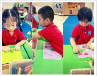 1/ Hình ảnh hoạt động làm bưu thiếp của các Bé lớp MG Bé C3