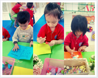 2/ Hình ảnh hoạt động làm bưu thiếp của các Bé lớp MG Nhỡ B1