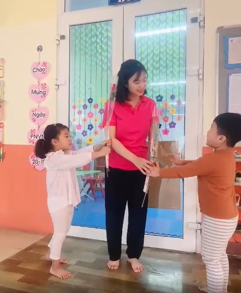 Yêu nhiều lắm lắm khi ngắm các con chăm chú, cẩn thận, nhẹ nhàng trang trí những tấm thiệp thật là xinh. Các con đã có món quà ý nghĩa nhưng đong đầy yêu thương để mang về tặng bà, tặng mẹ, tặng Cô… những người các con yêu thương!