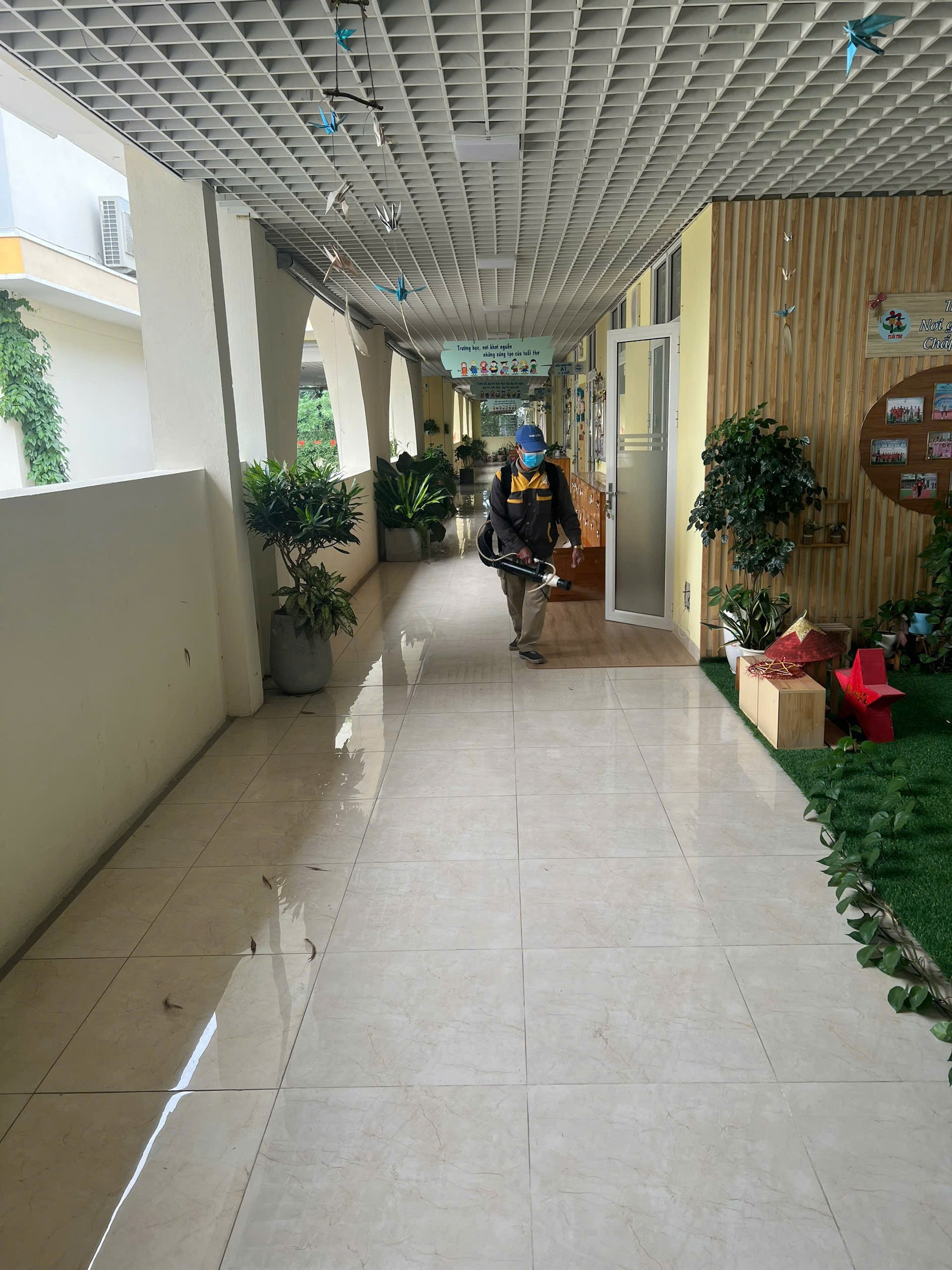 Trước xu hướng gia tăng bệnh tay chân miệng (TCM).việc diệt khuẩn, bề mặt đồ đạc trong nhà, trường học là điều vô cùng quan trọng đối với các gia đình và các trường học nhất là các trường mầm non khi trẻ mầm non chưa biết cách phòng dịch bệnh. Để chủ động trong công tác phòng, chống dịch bệnh tay chân miệng bên cạnh việc duy trì vệ sinh môi trường lớp học thu gom rác thải hàng ngày. Ngày 22/11/2025 nhà trường kết hợp Trạm Y tế phường Giảng Võ trường thực hiện phun khử khuẩn Cloramin B toàn bộ phòng ban, lớp học, khu vực ngoại cảnh sân trường, Khử trùng đồ dùng, dồ chơi của trẻ... Trước và sau phun các lớp đã thực hiện đúng quy trình khử khuẩn Cloramin B