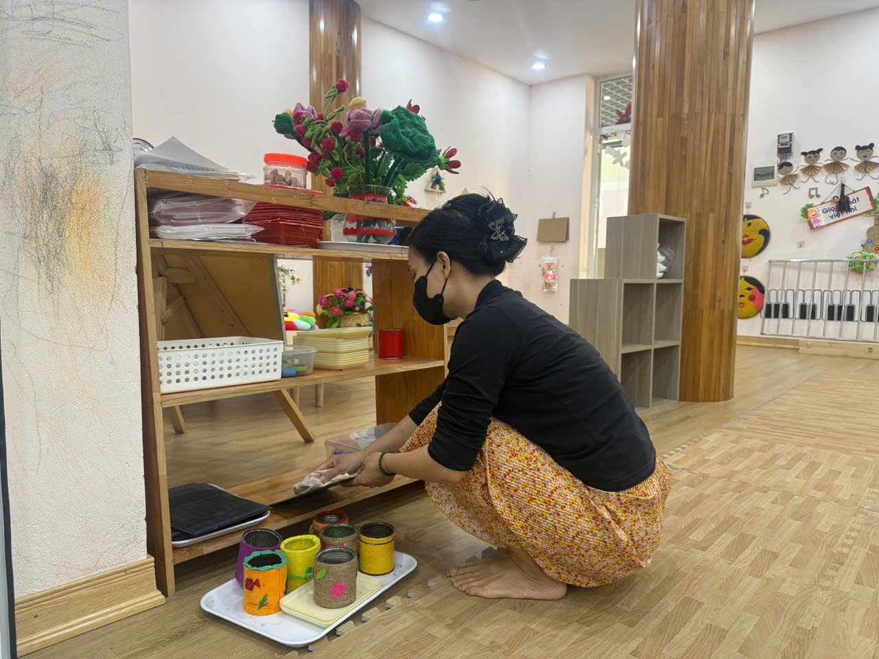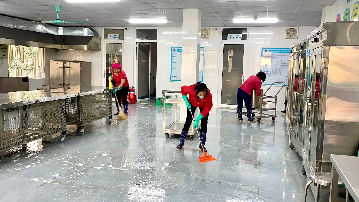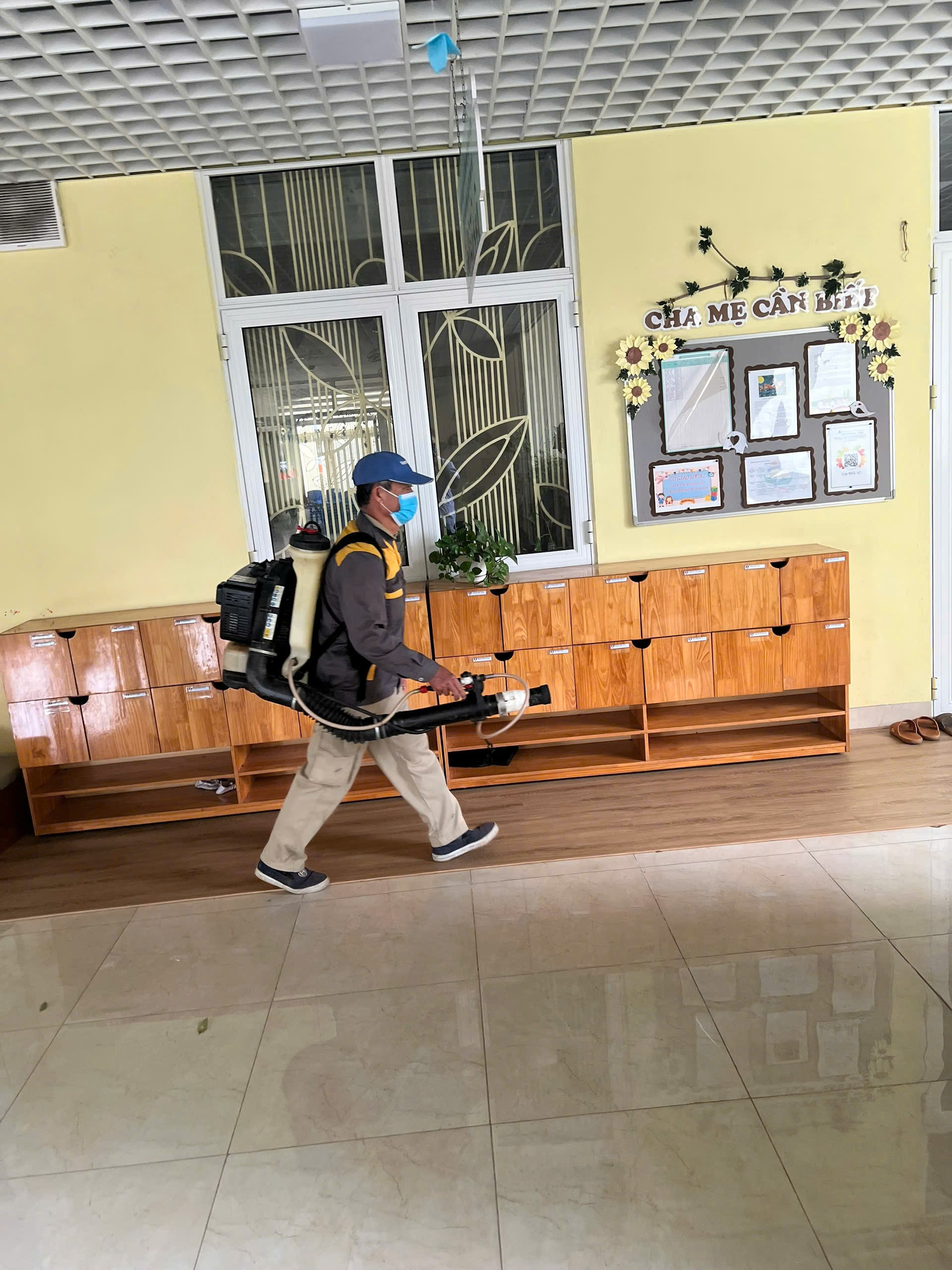 Sau khi hoạt động phun khử khuẩn xong, tập thể giáo viên và nhân viên nhà trường đã tiến hành vệ sinh đồ dùng – đồ chơi, lau dọn bề mặt, sắp xếp lại môi trường trong và ngoài lớp học, bếp ăn... nhằm đảm bảo không gian học tập sạch sẽ – an toàn – thân thiện cho trẻ.