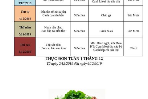 Thực đơn tuần 4 tháng 9/ 2019