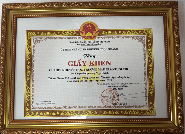 Chúc mừng tập thể trường MG Tuổi thơ và cá nhân các cô giáo đã có thành tich xuât sắc trong công tác Khuyến học, khuyến tài năm 2020.