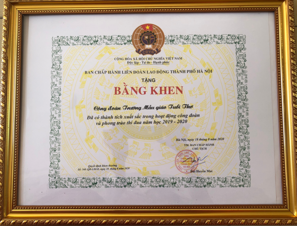 Chúc mừng Công đoàn trường MG Tuổi Thơ đạt thành tích xuất sắc trong hoạt động Công đoàn