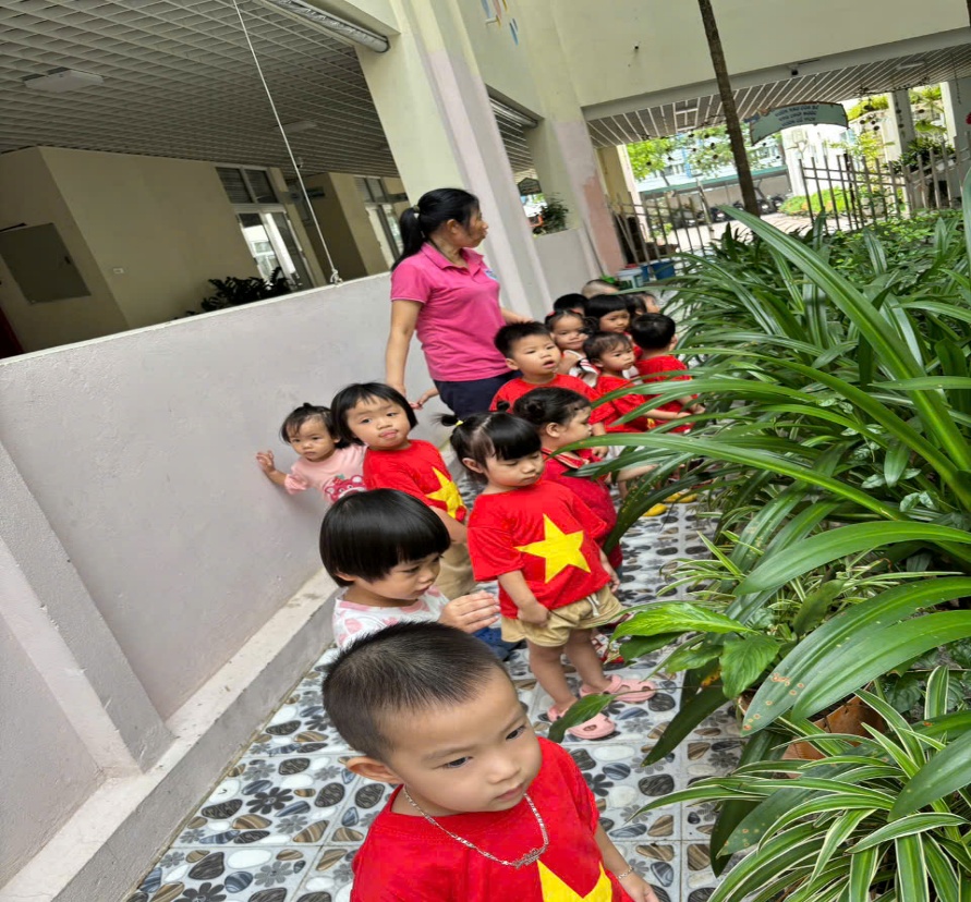 Dưới đây là 1 số hình ảnh của các bé lớp nhà trẻ D2 tham gia hoạt động ngoài trời tham quan vườn rau trong sân trường.