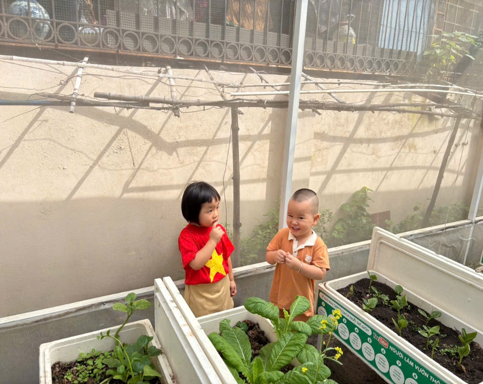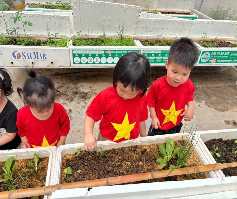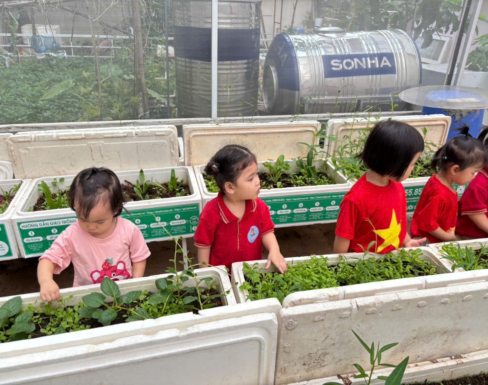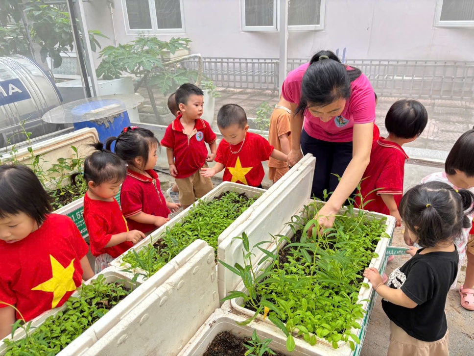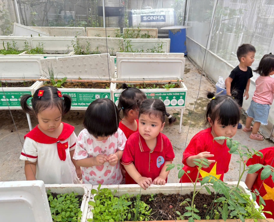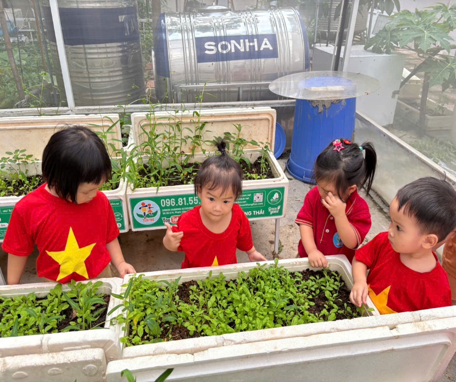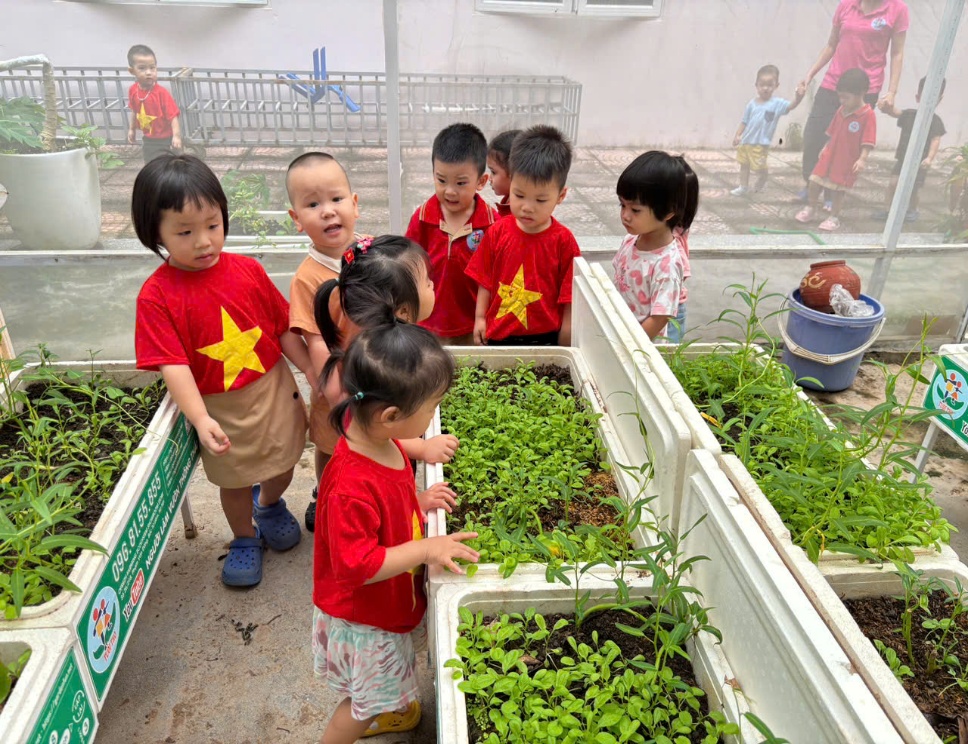 Trường mẫu giáo Tuổi Thơ xây dựng mô hình vườn rau, vườn hoa và vườn cây ăn quả, tạo môi trường an toàn cho các bé tìm hiểu, khám phá và trải nghiệm thông qua các hoạt động vui chơi ngoài trời; hoạt động lao động.